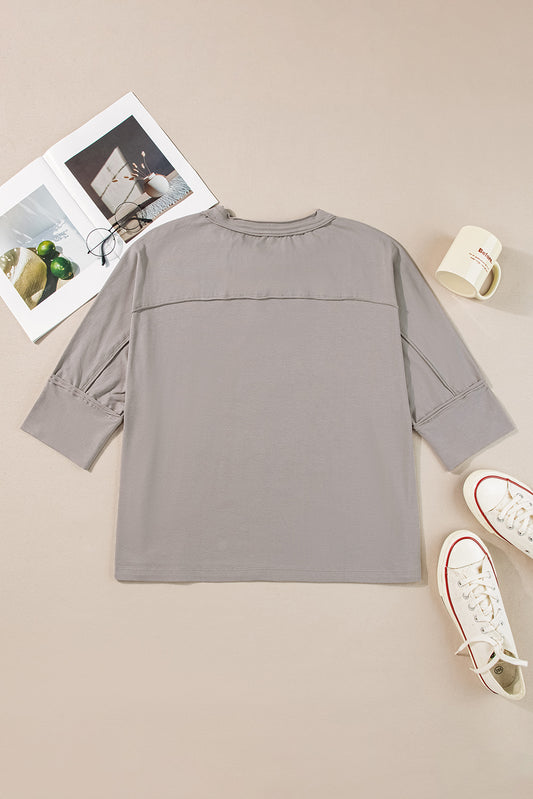 Medium Grey Floral Starbust Exposed Seam Mineral Wash Top