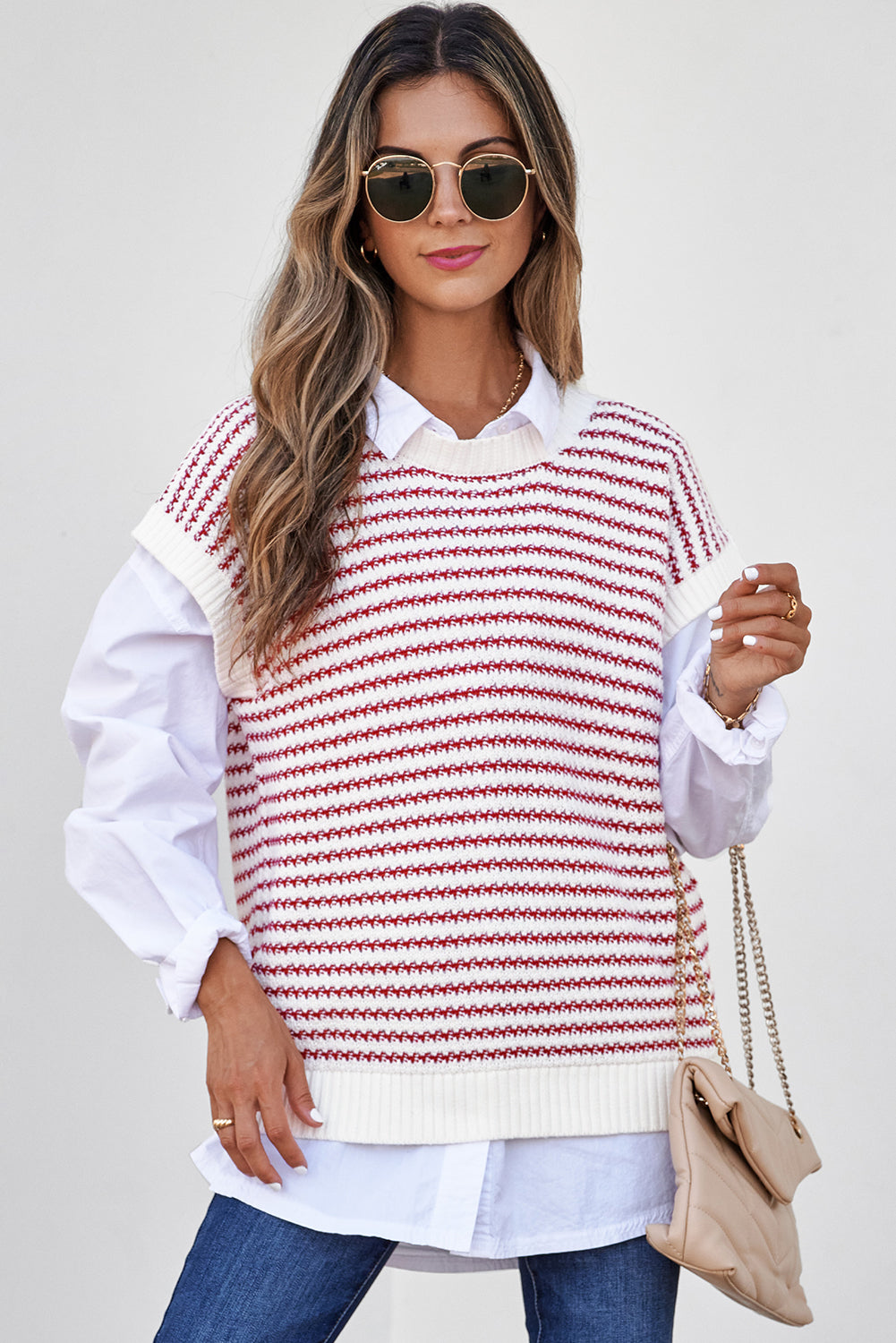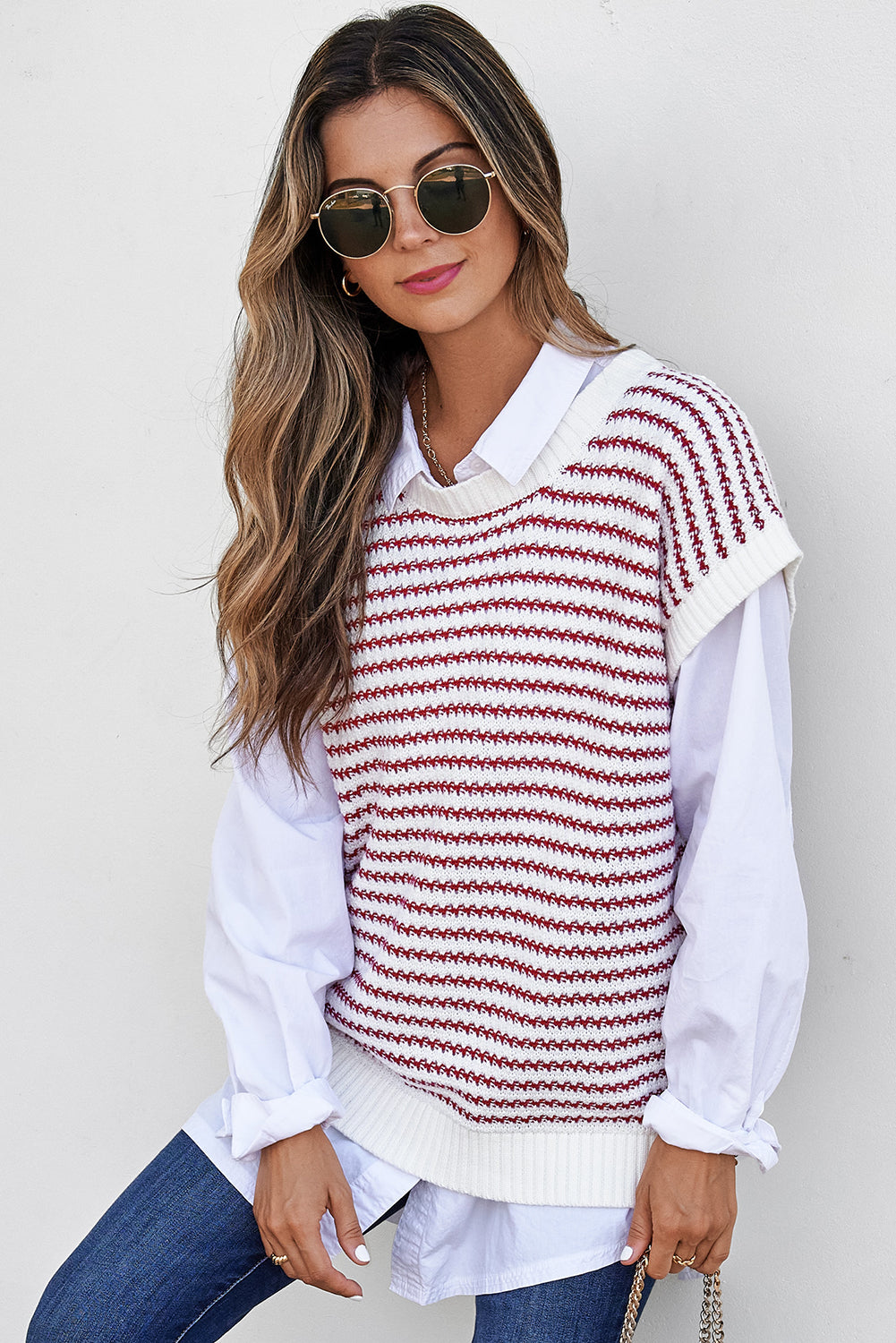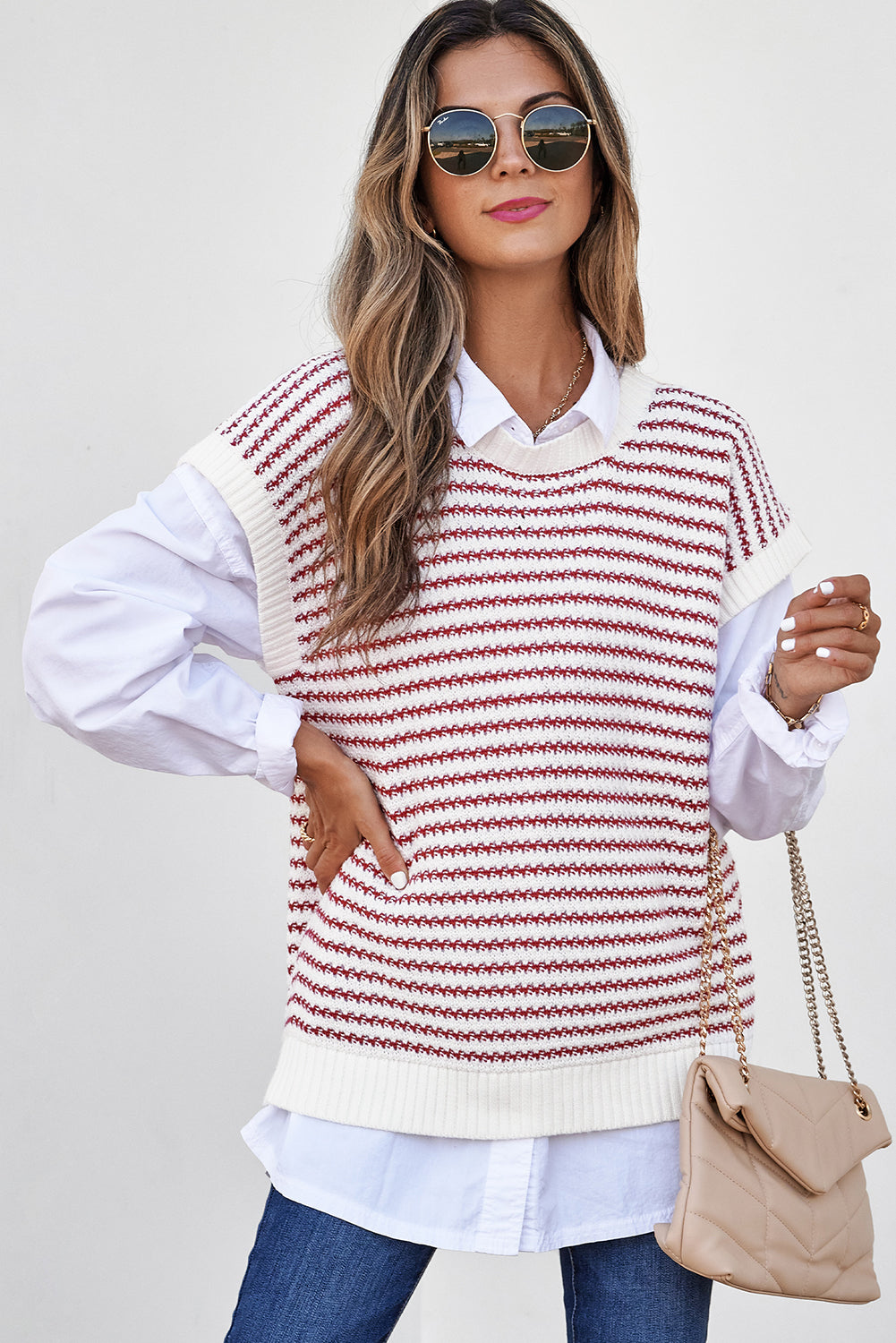 Blue Stripe Ribbed Trim Loose Fit Knitted Sweater Vest