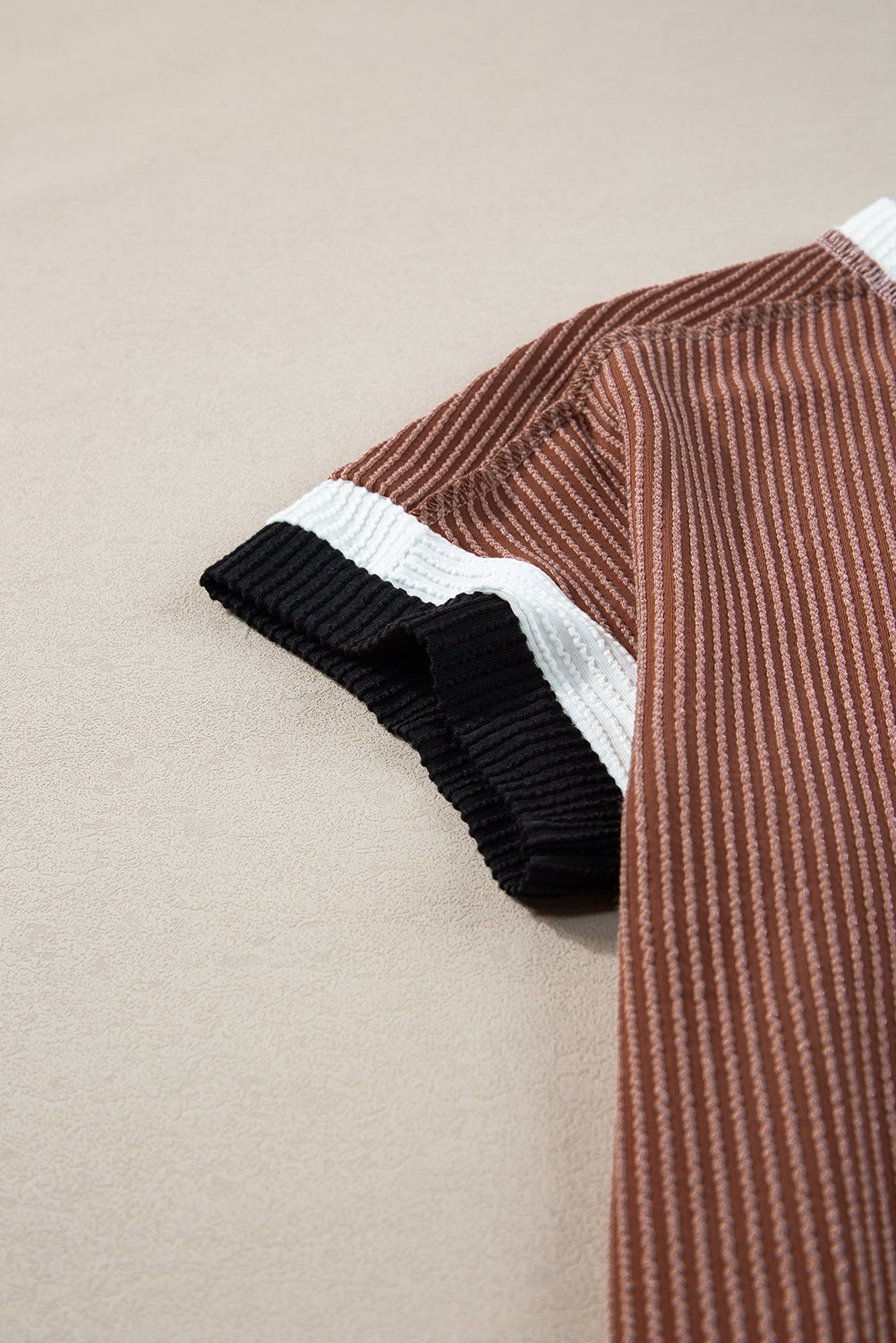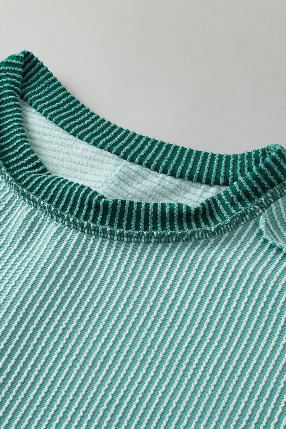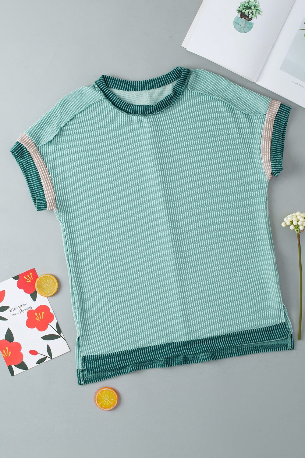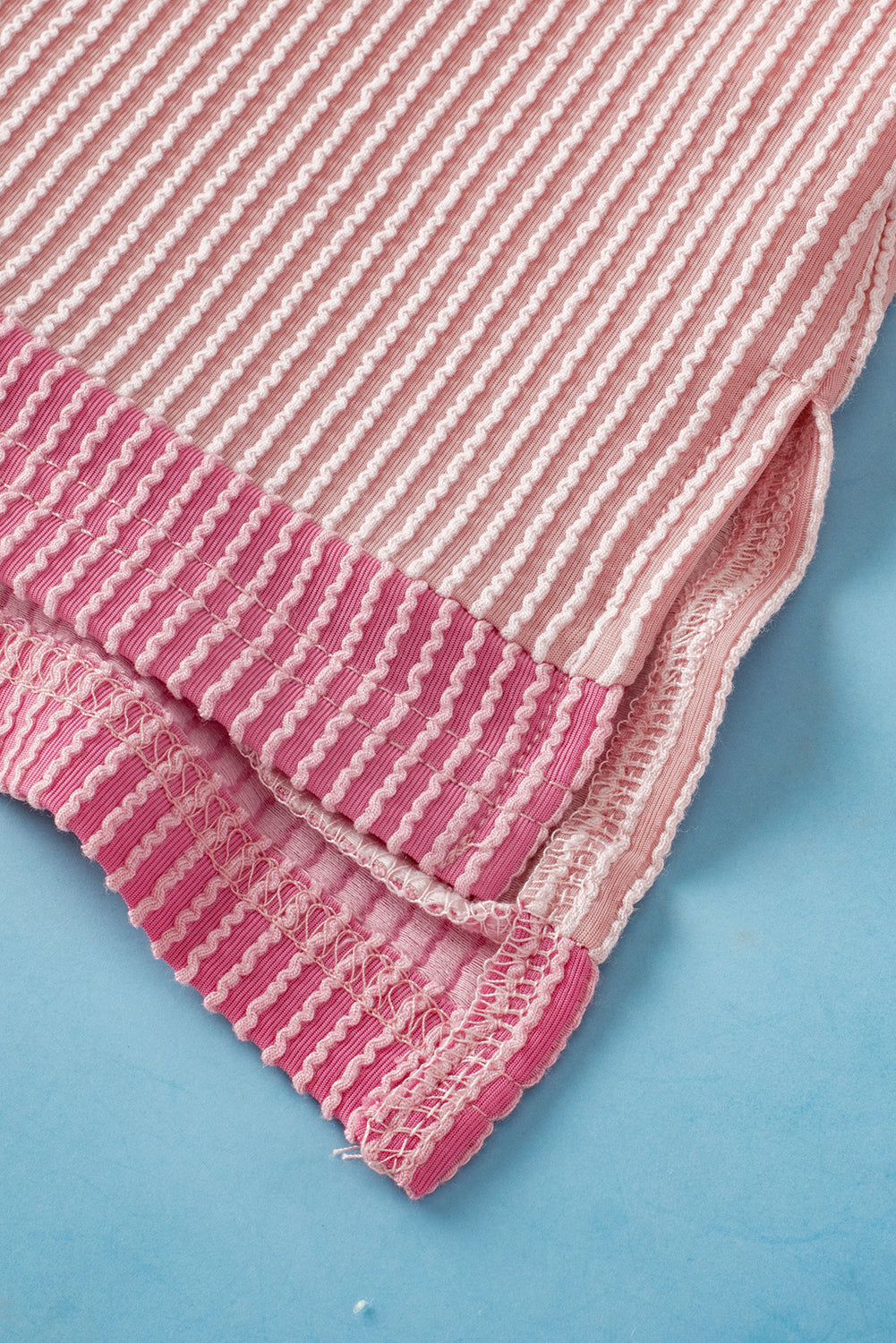 Bright Pink Textured Contrast Trim Round Neck T Shirt