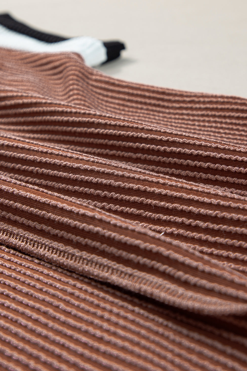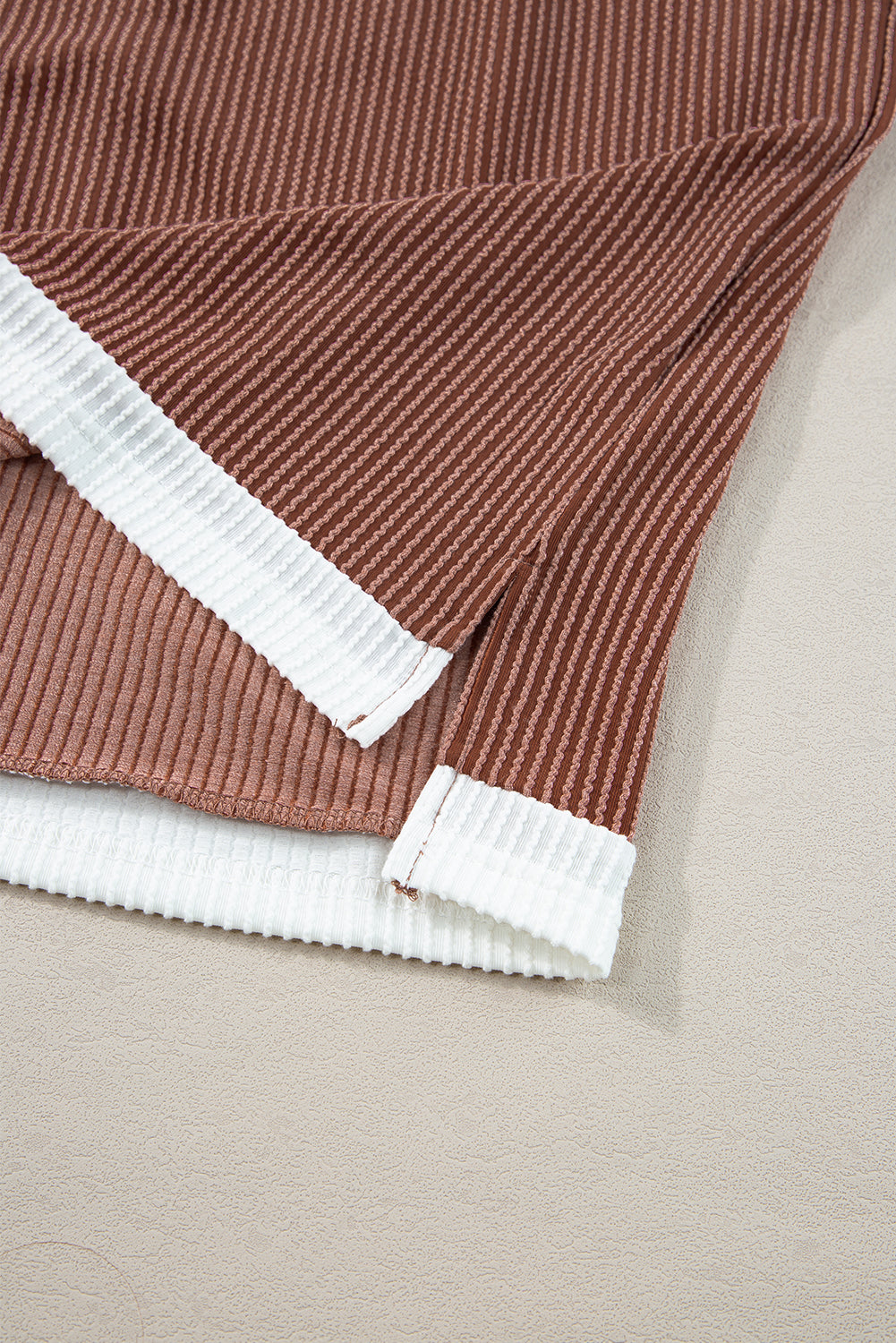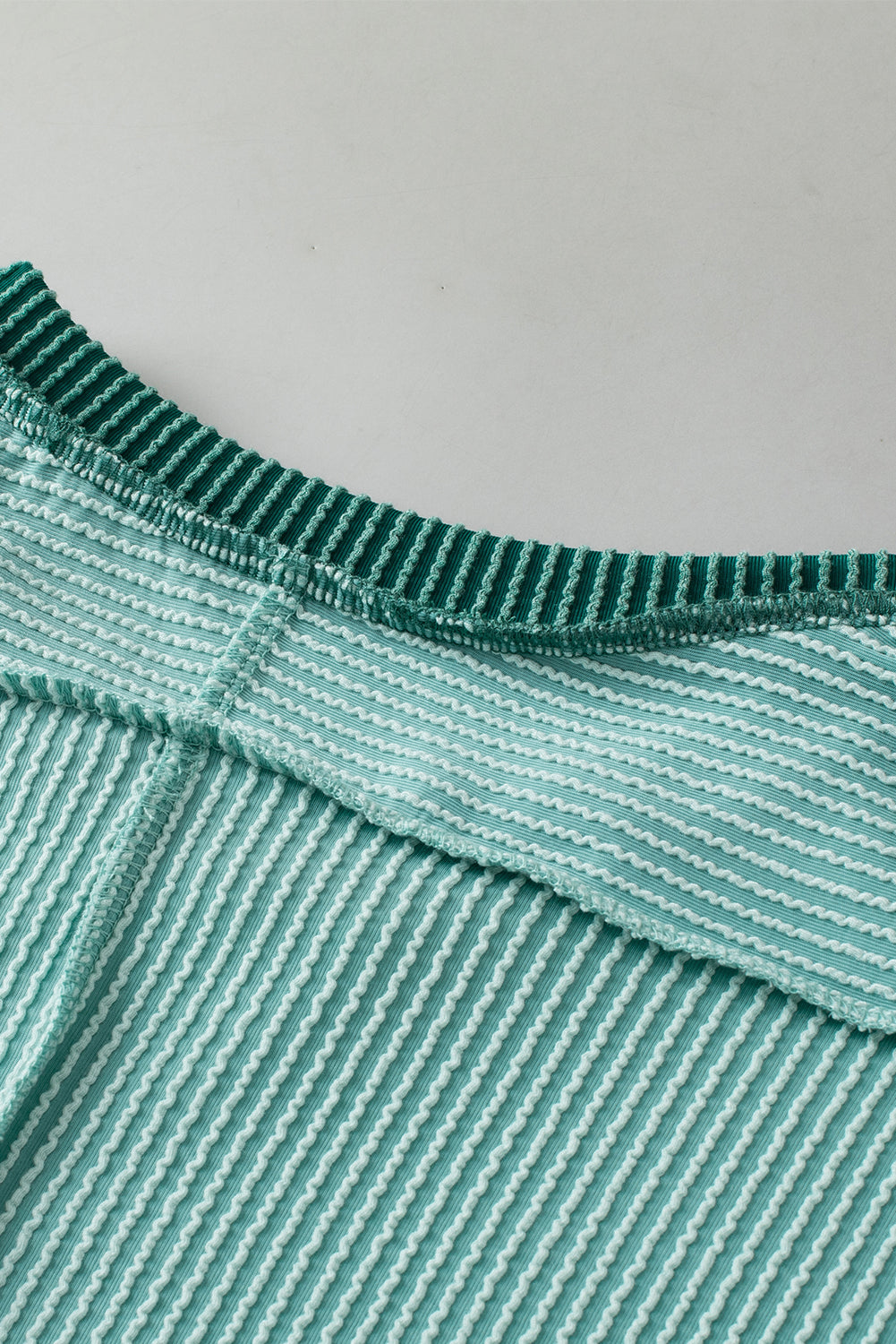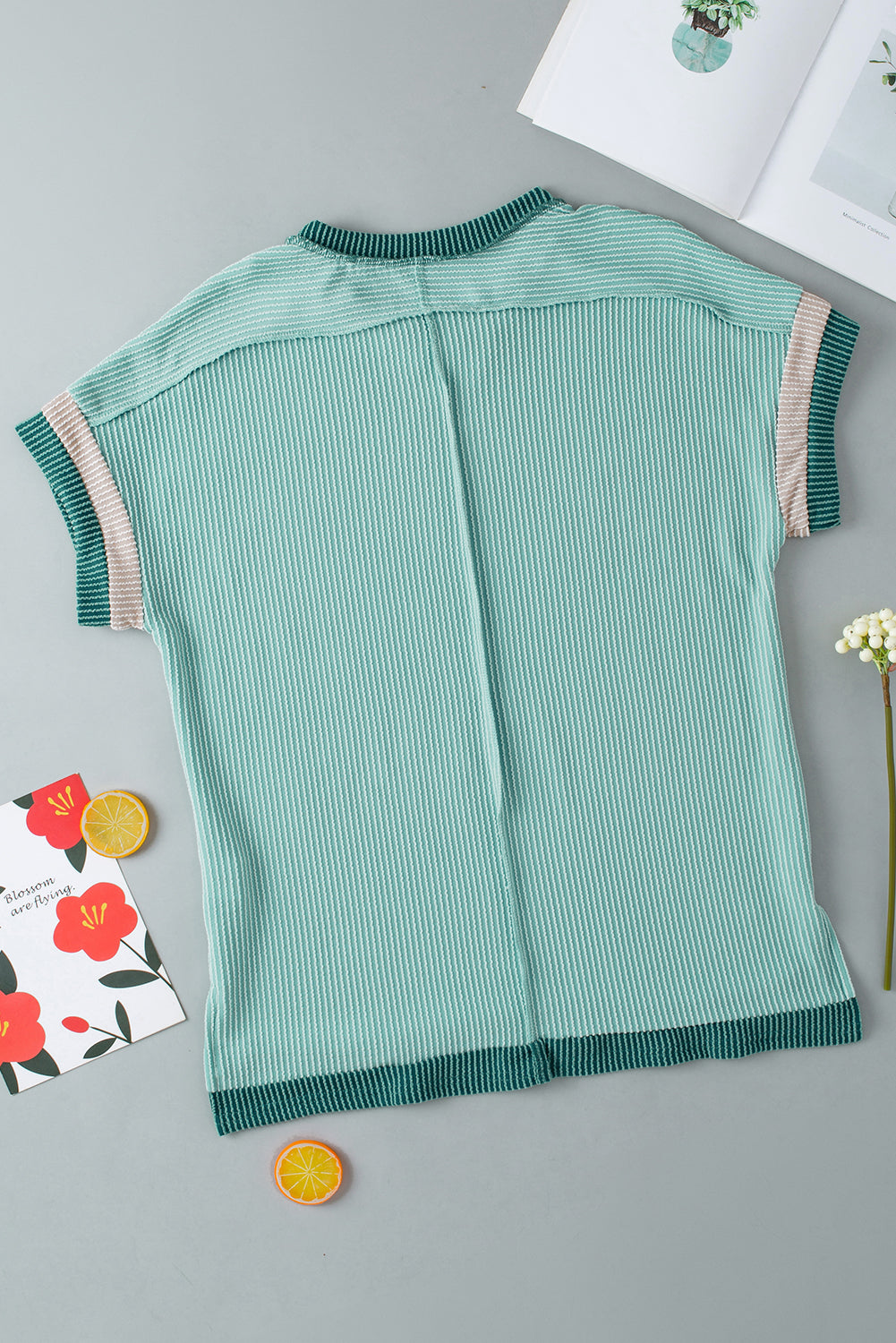 Bright Pink Textured Contrast Trim Round Neck T Shirt