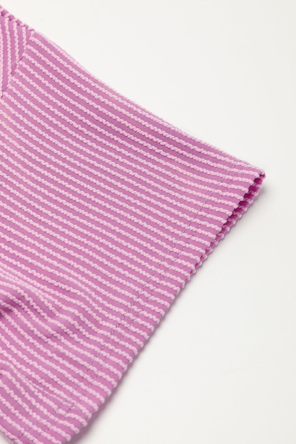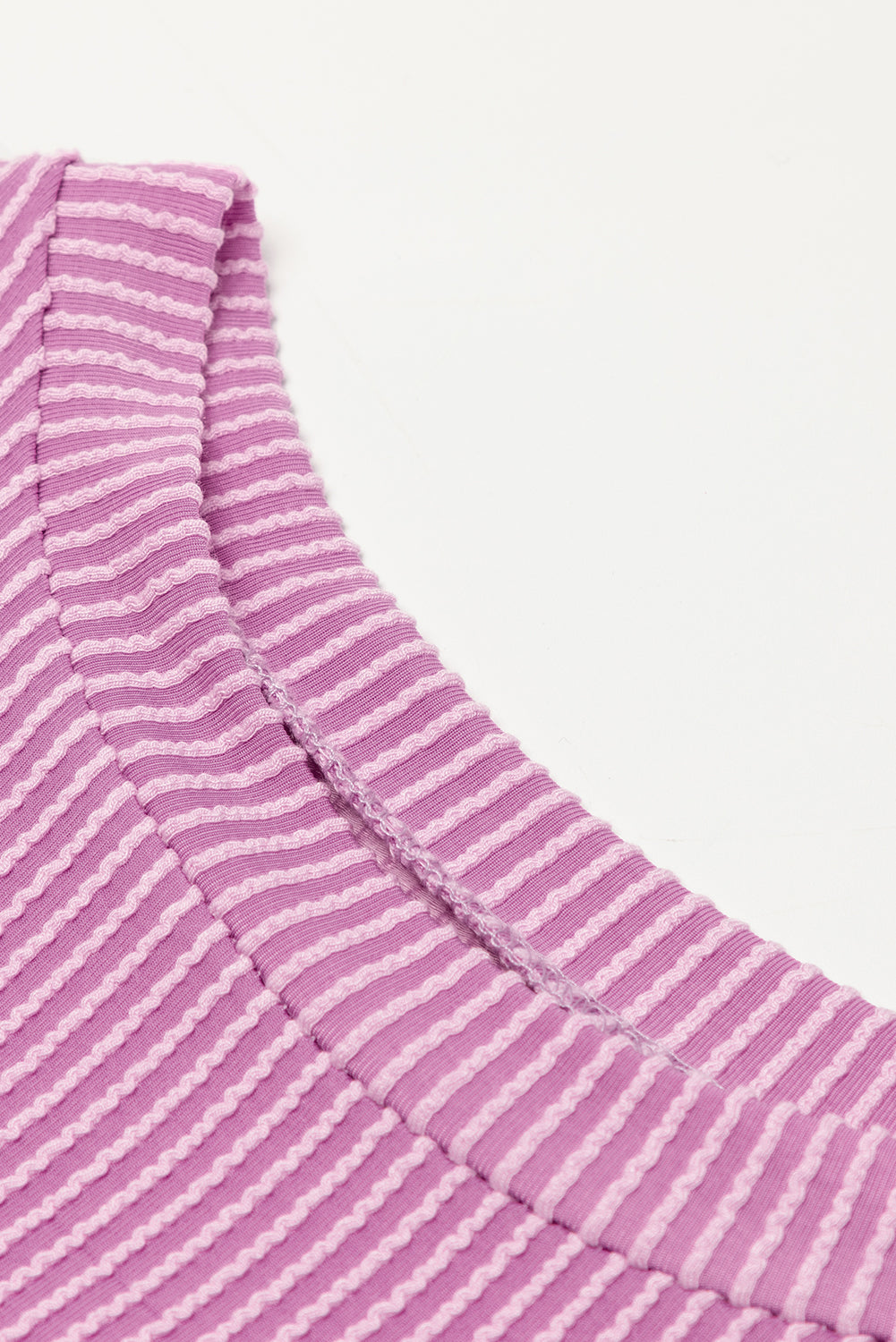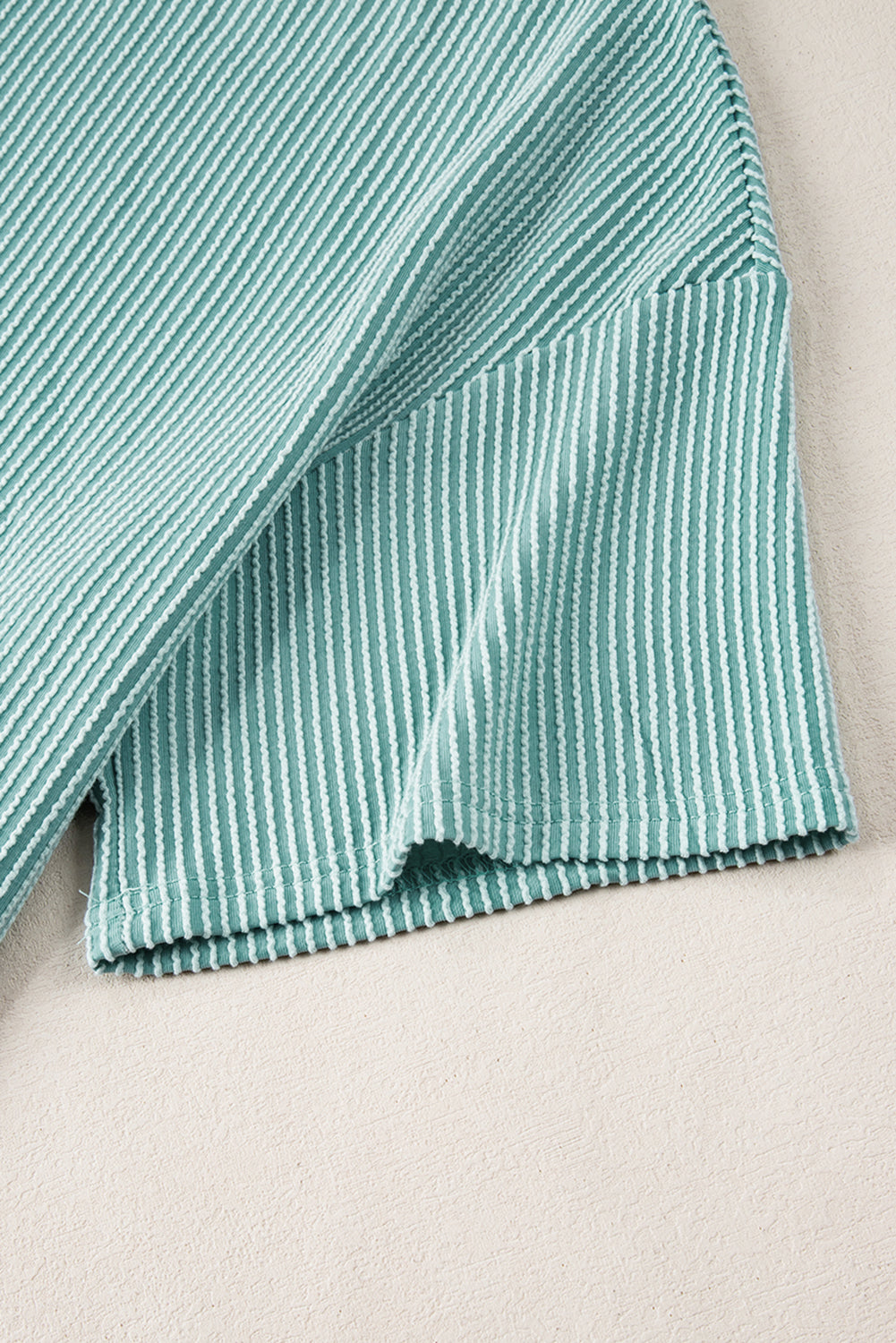 Carbon Grey Ribbed Textured Knit Loose Fit Tee and Shorts Set