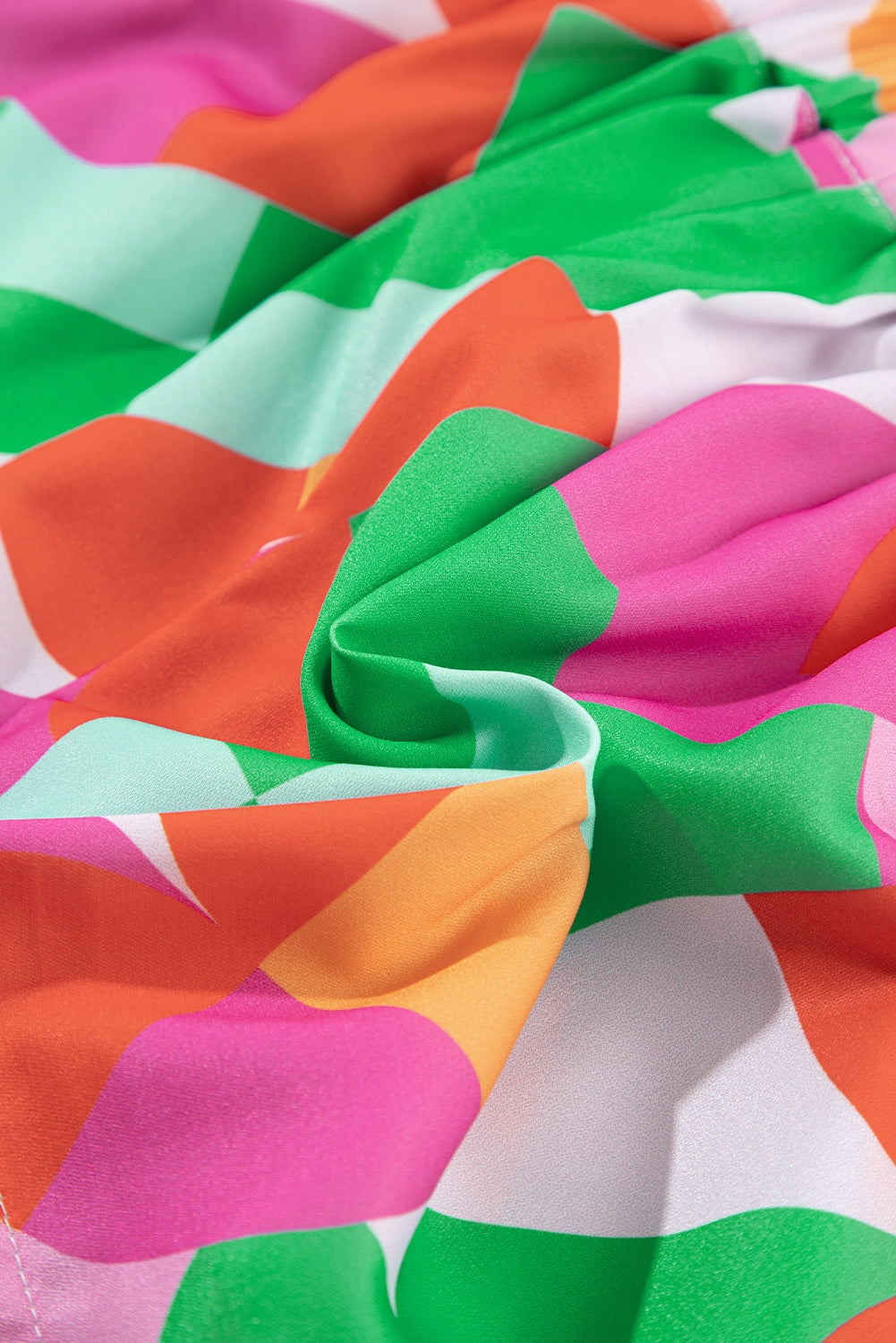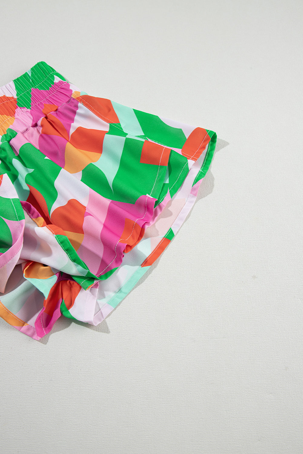 Green Abstract Print Smock Waist Casual Shorts