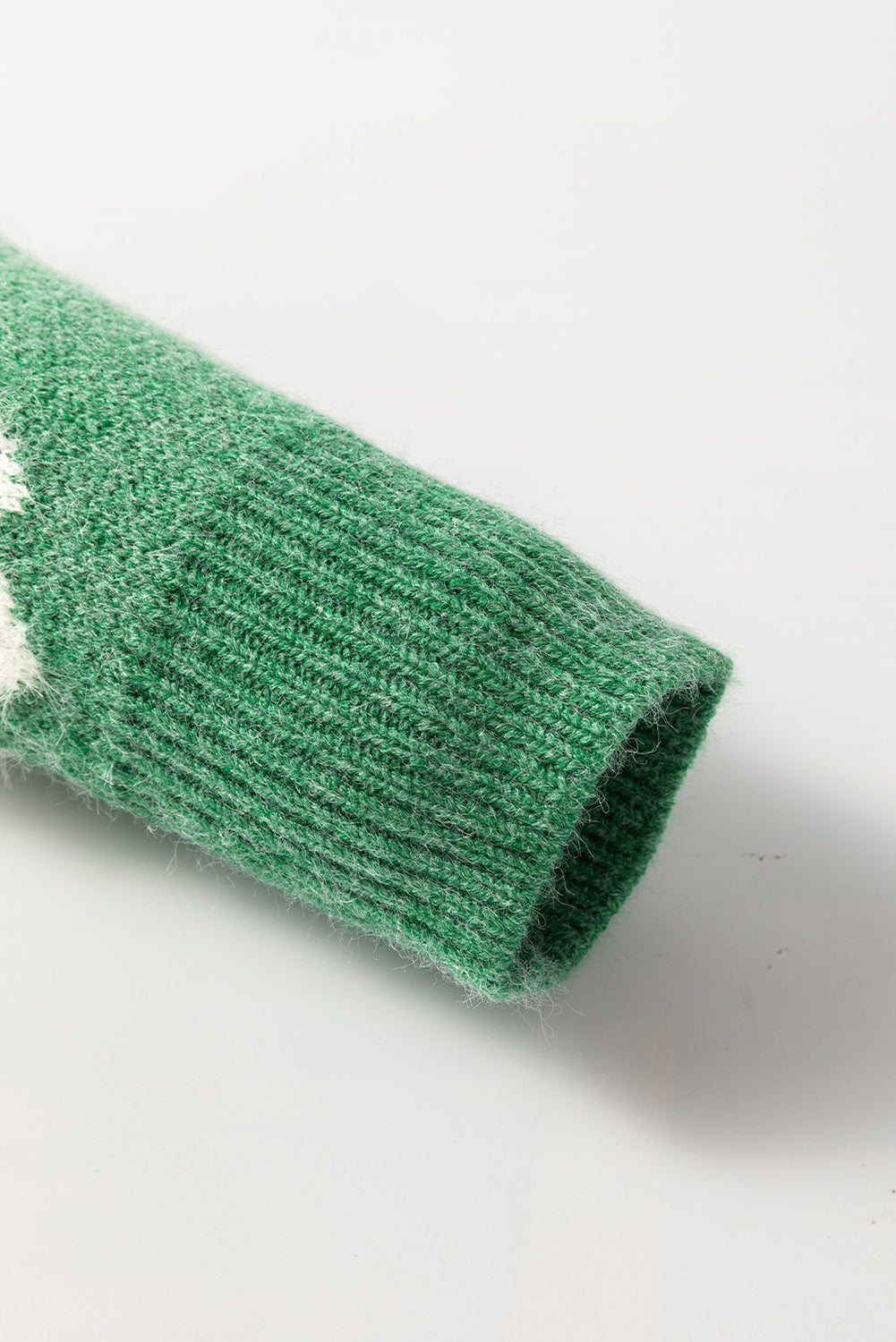 - Stylish floral pattern adds a pop of color to this trendy sweater.