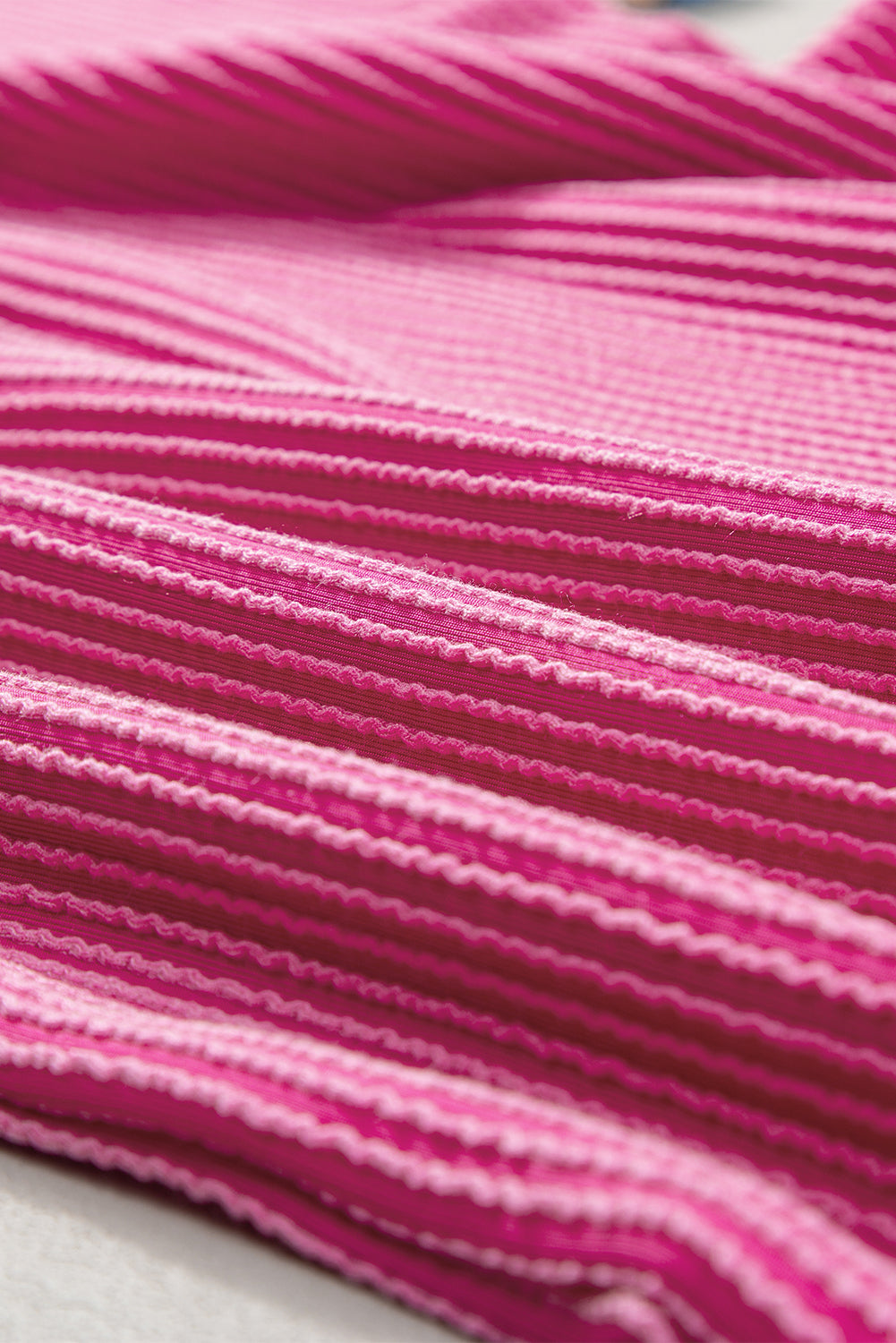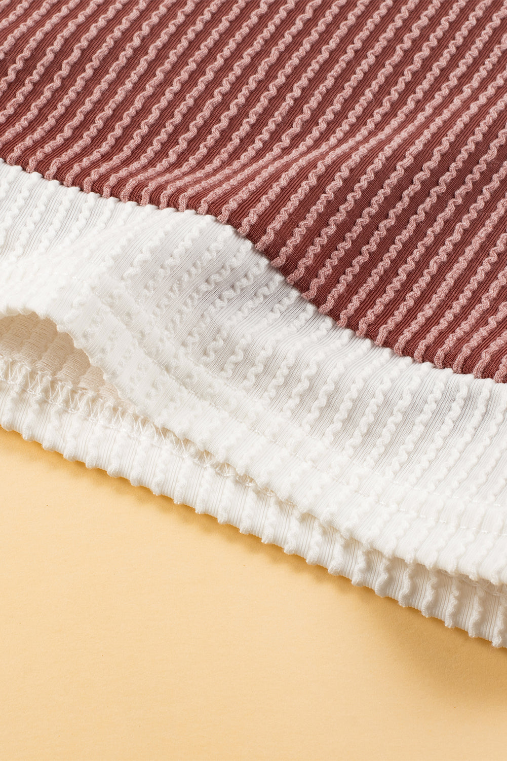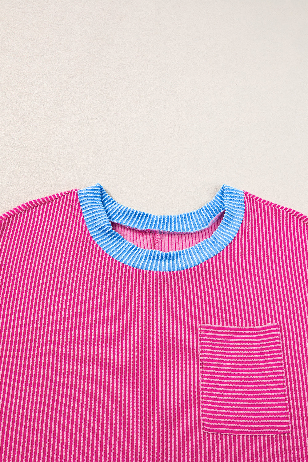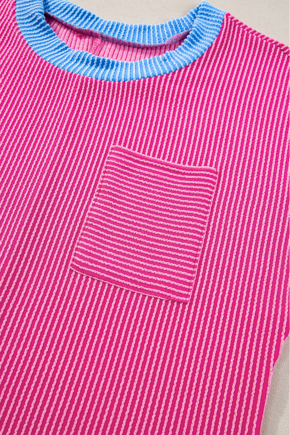 Light French Beige Textured Colorblock Edge Patched Pocket T Shirt Dress
