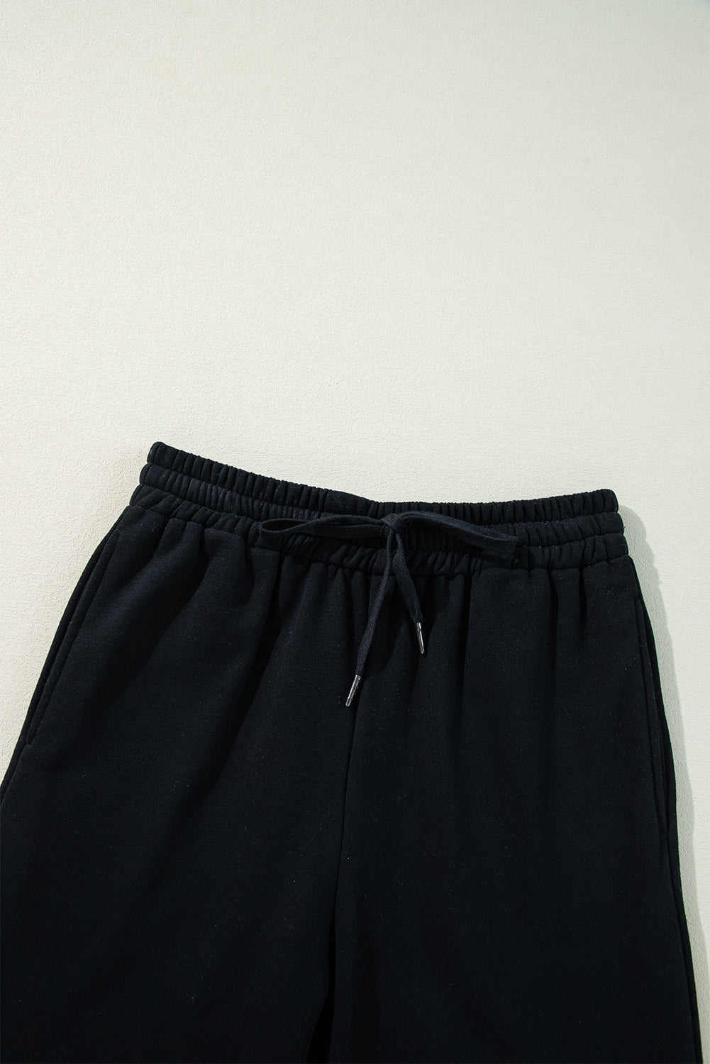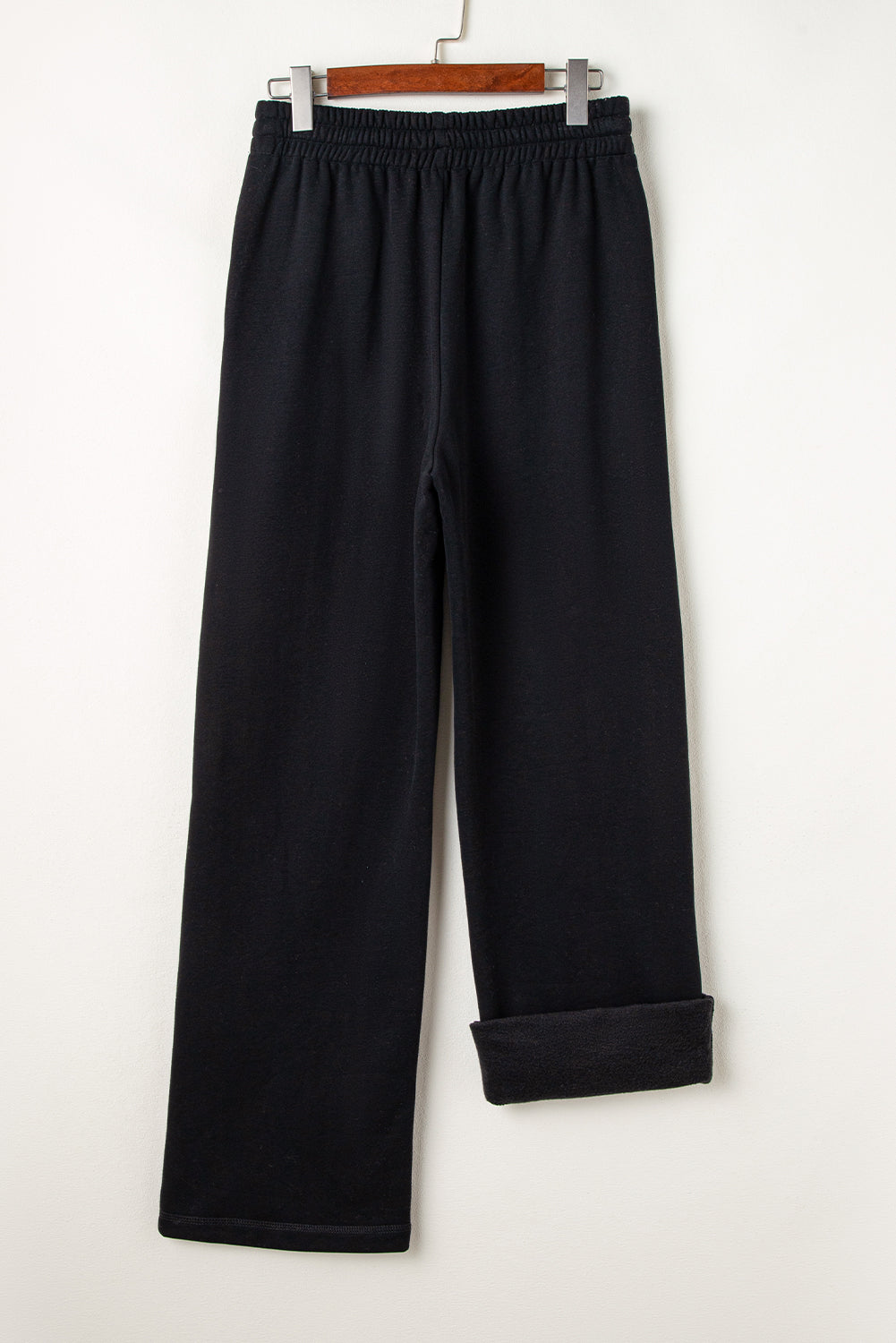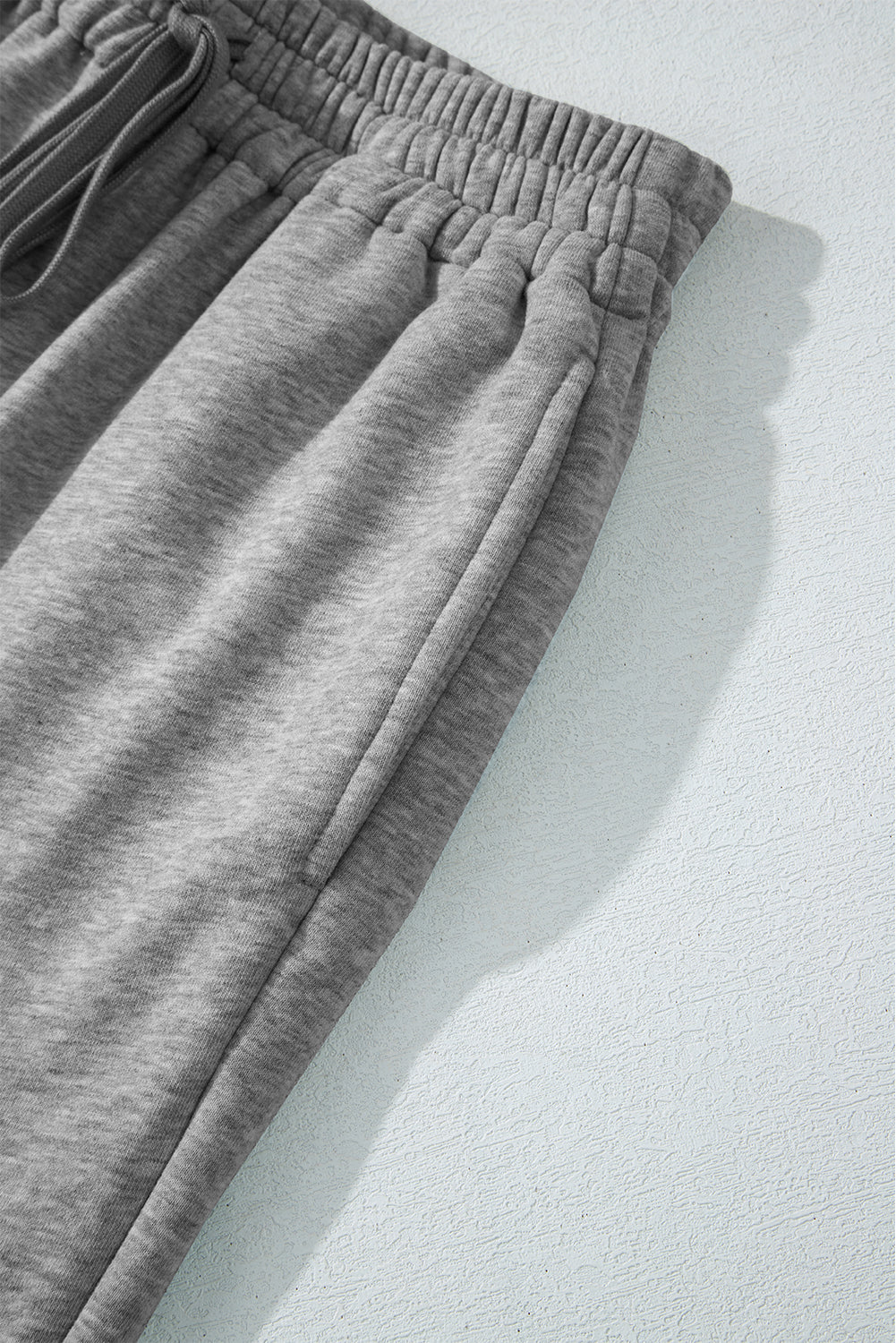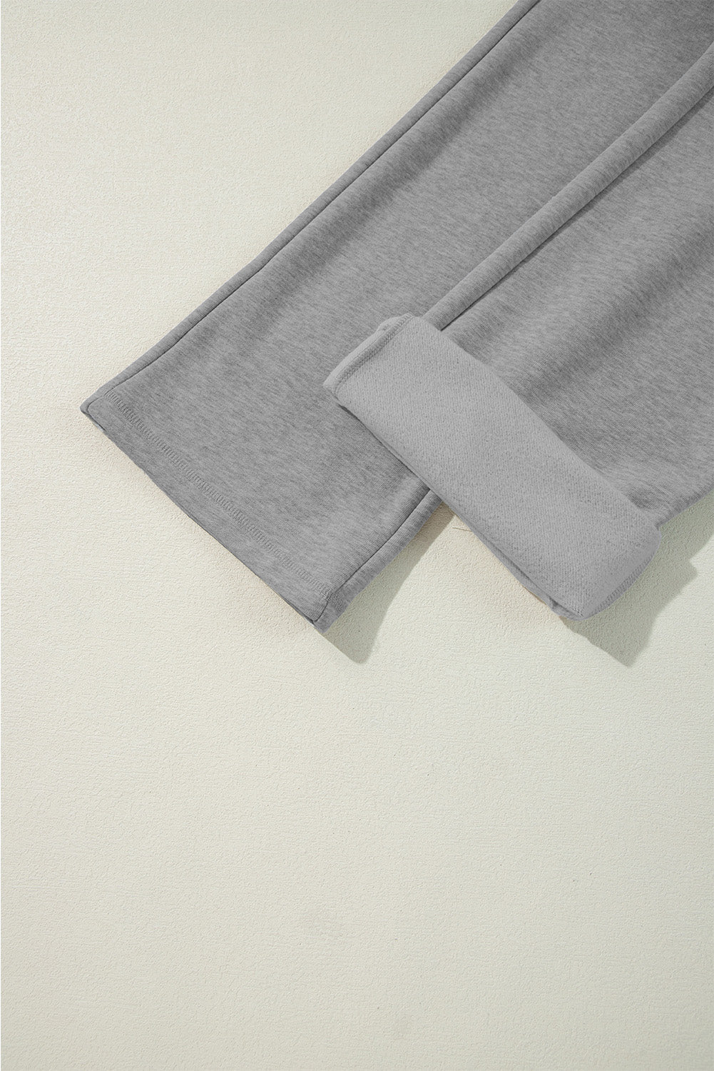 Light Grey Solid Color Fleece Lined Drawstring Waist Casual Pants
