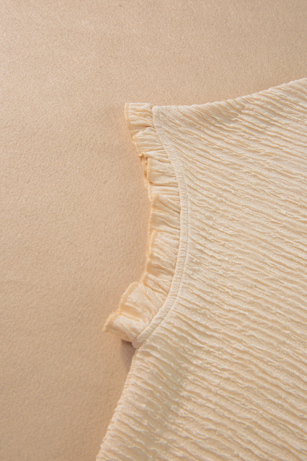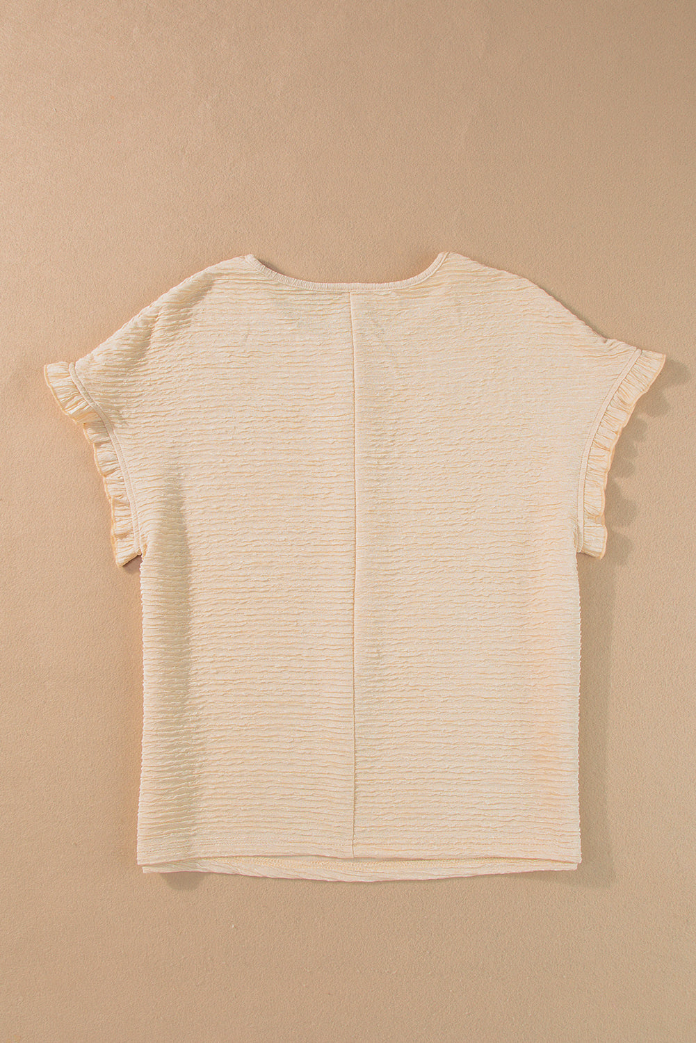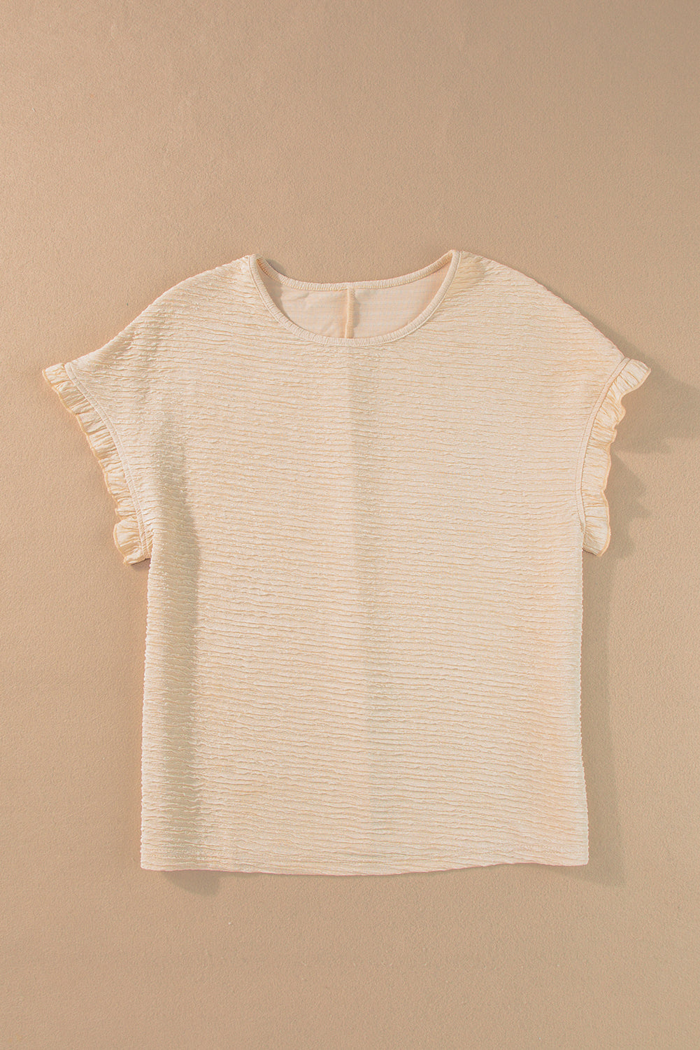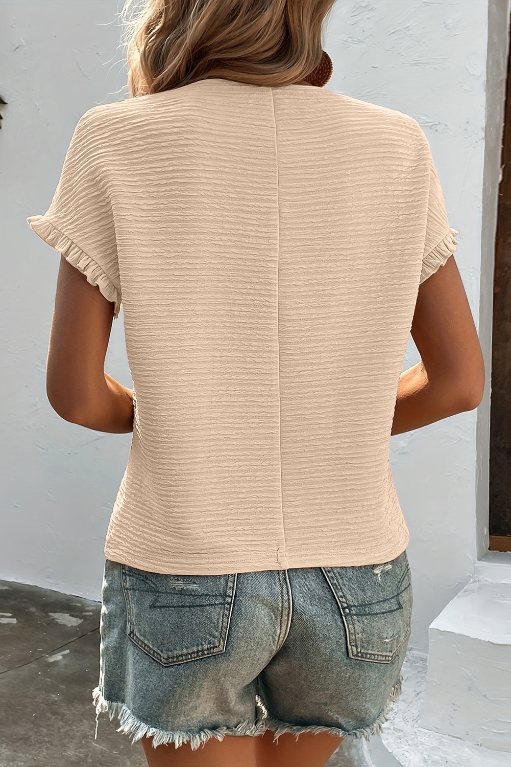 Light Pink Solid Textured Ruffled Short Sleeve Blouse