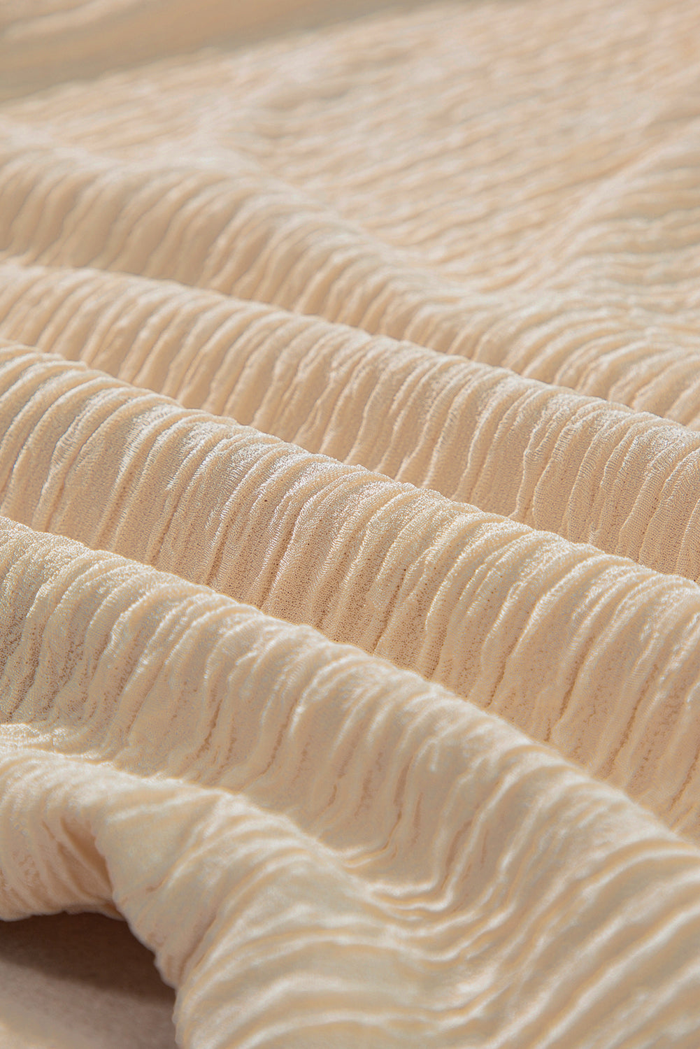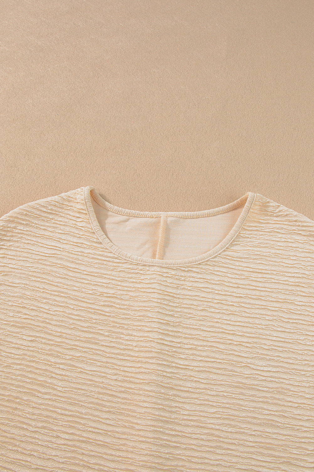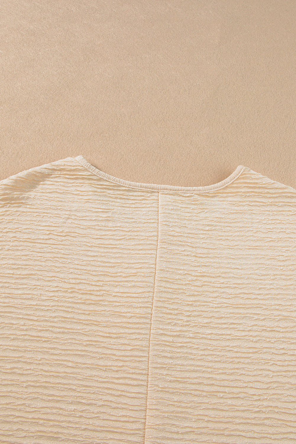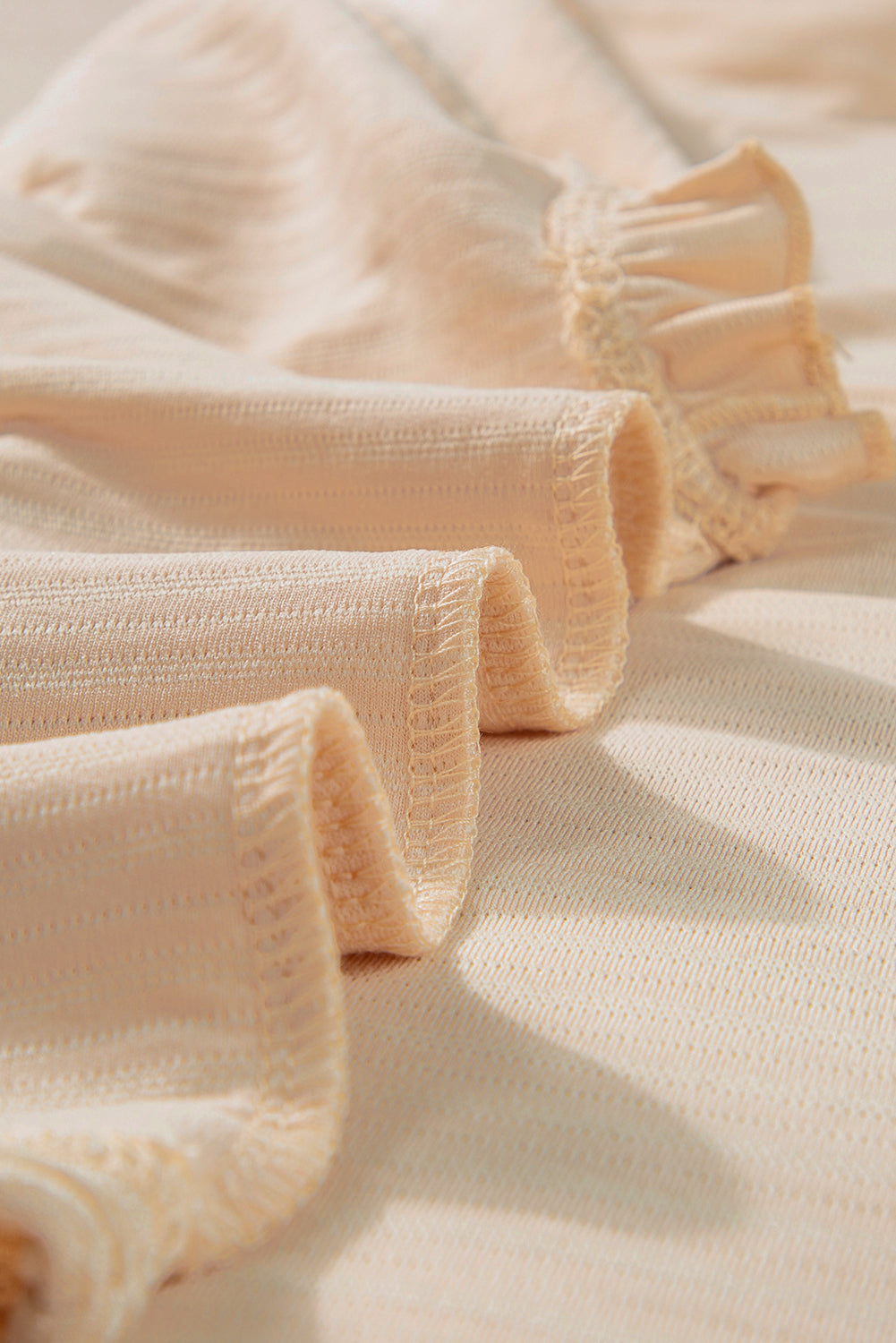 Light Pink Solid Textured Ruffled Short Sleeve Blouse