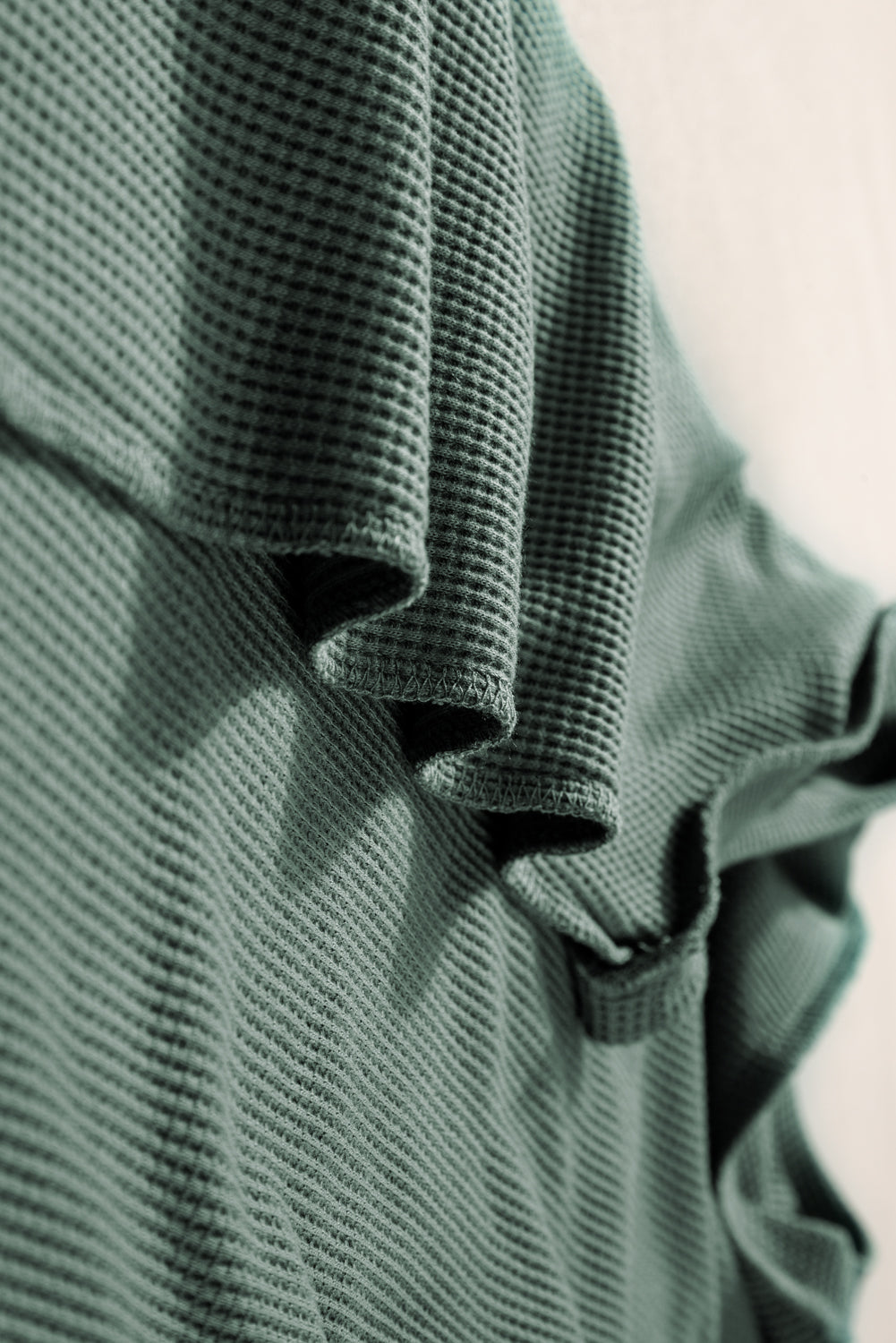Mist Green Waffle Knit Patched Pocket Tank and Drawstring Shorts Set