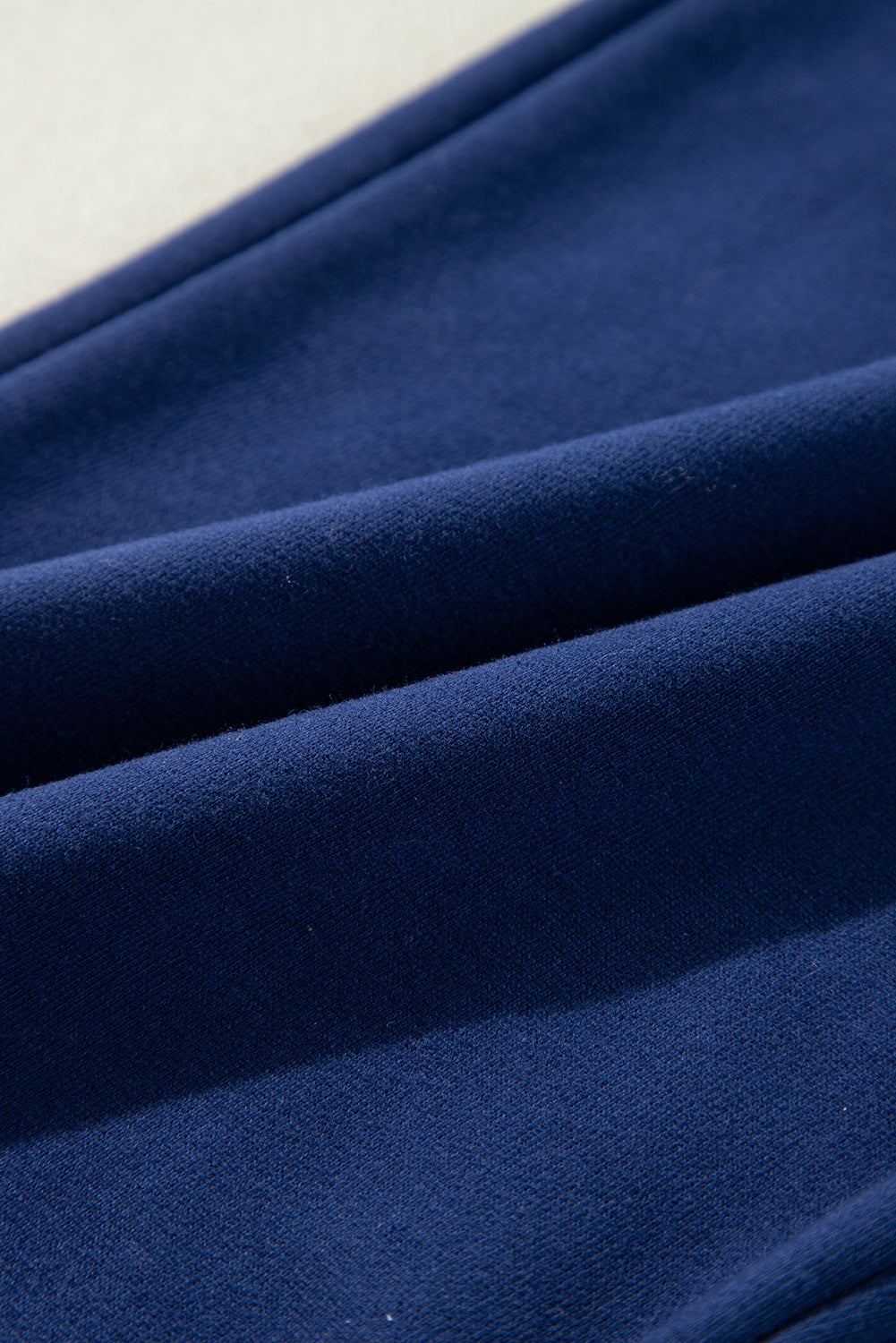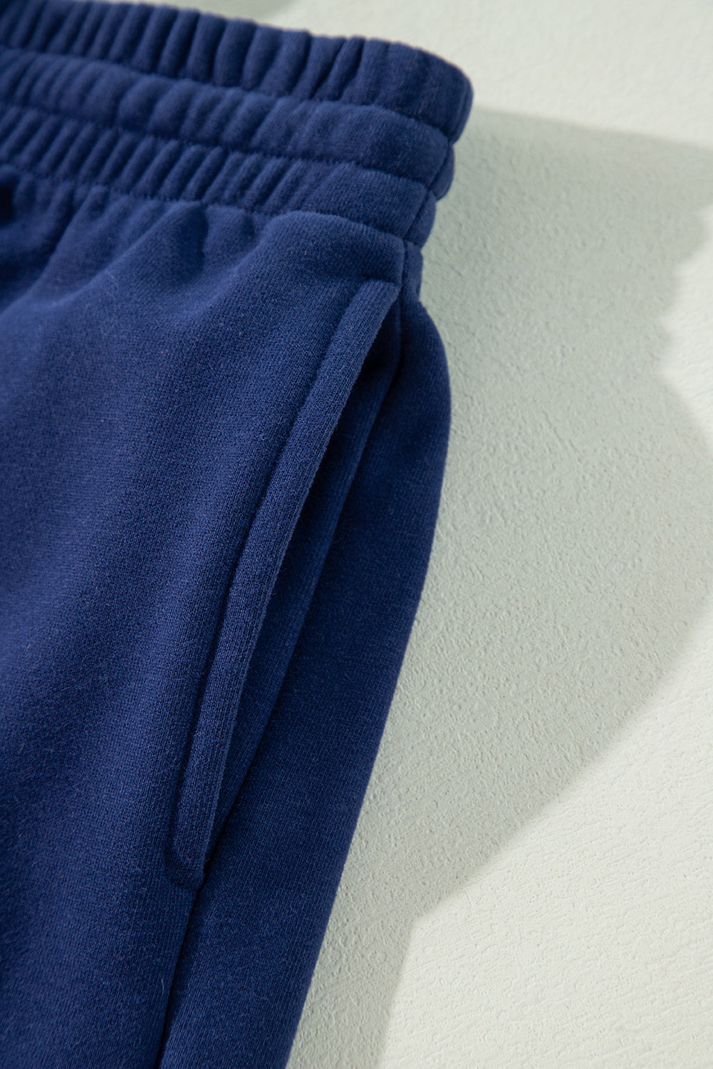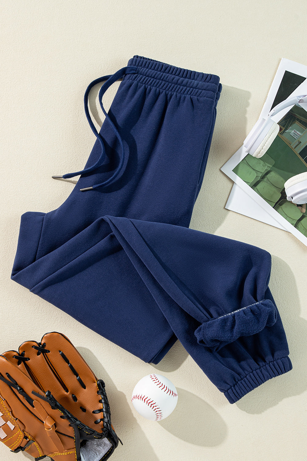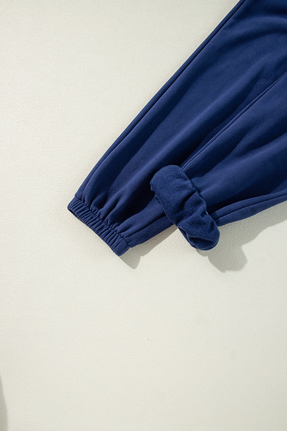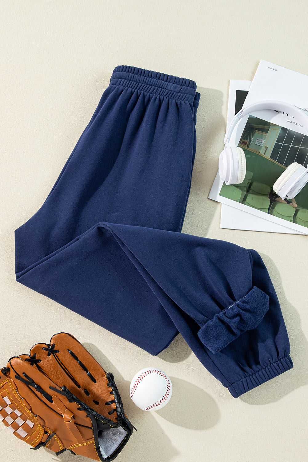 Navy Blue Solid Color Fleece Lined Drawstring Waist Joggers
