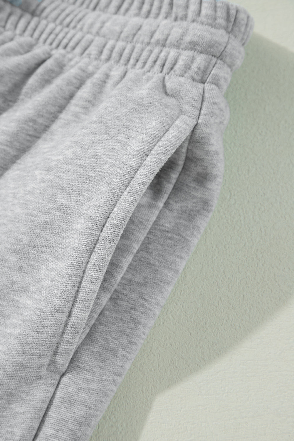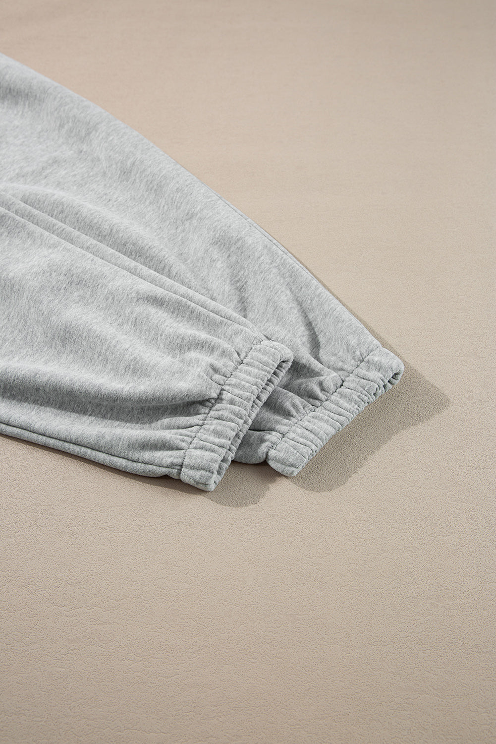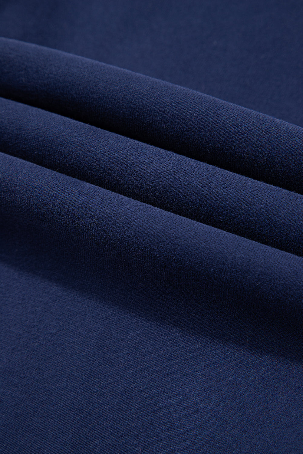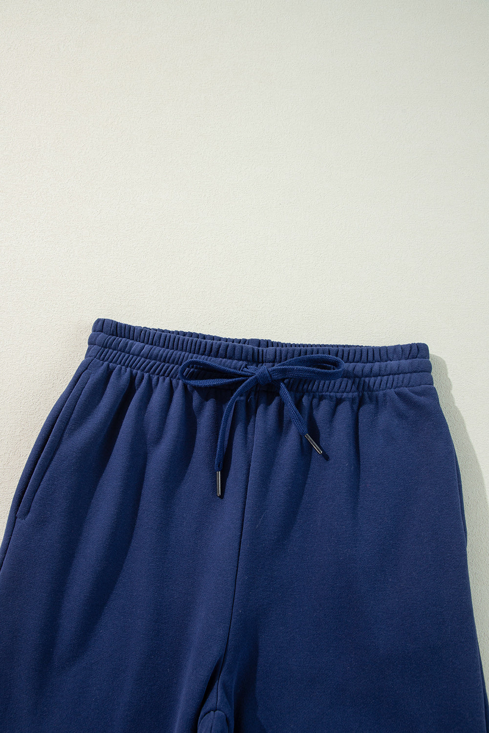 Navy Blue Solid Color Fleece Lined Drawstring Waist Joggers