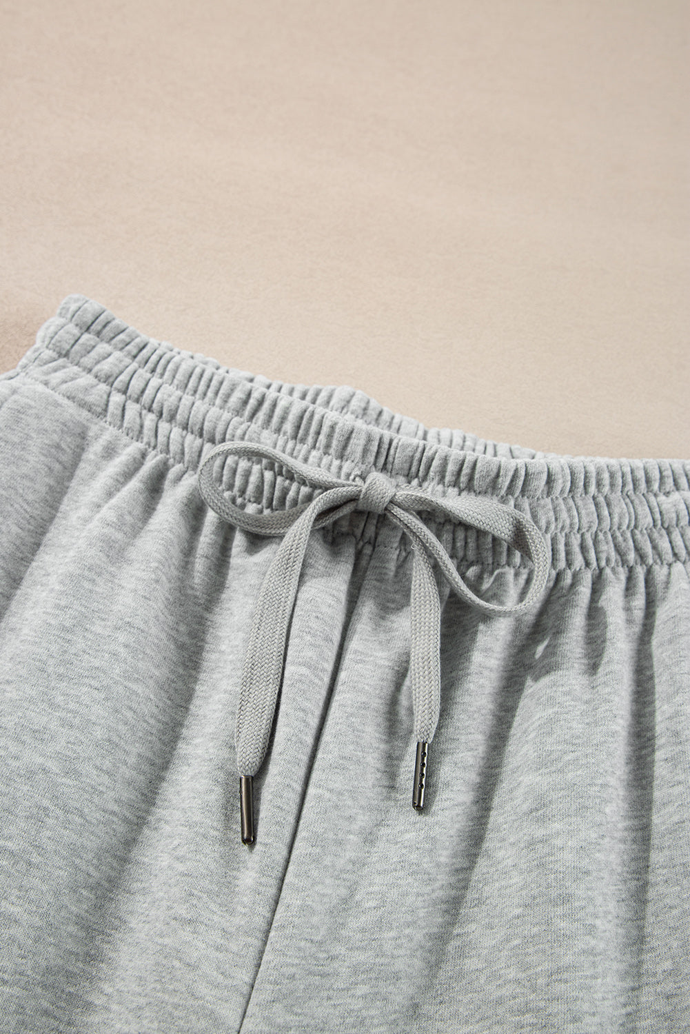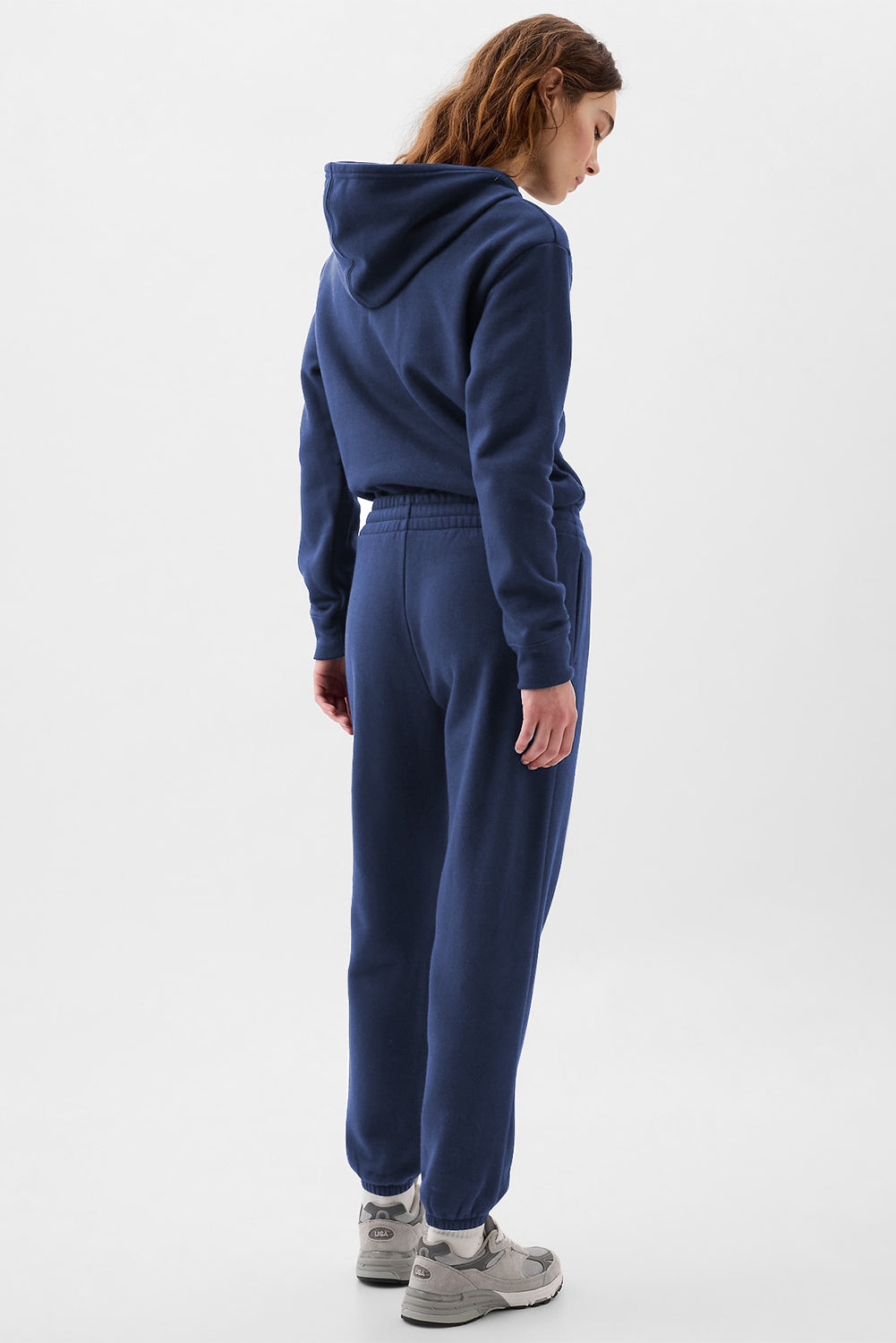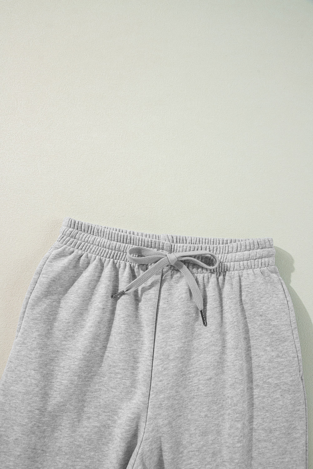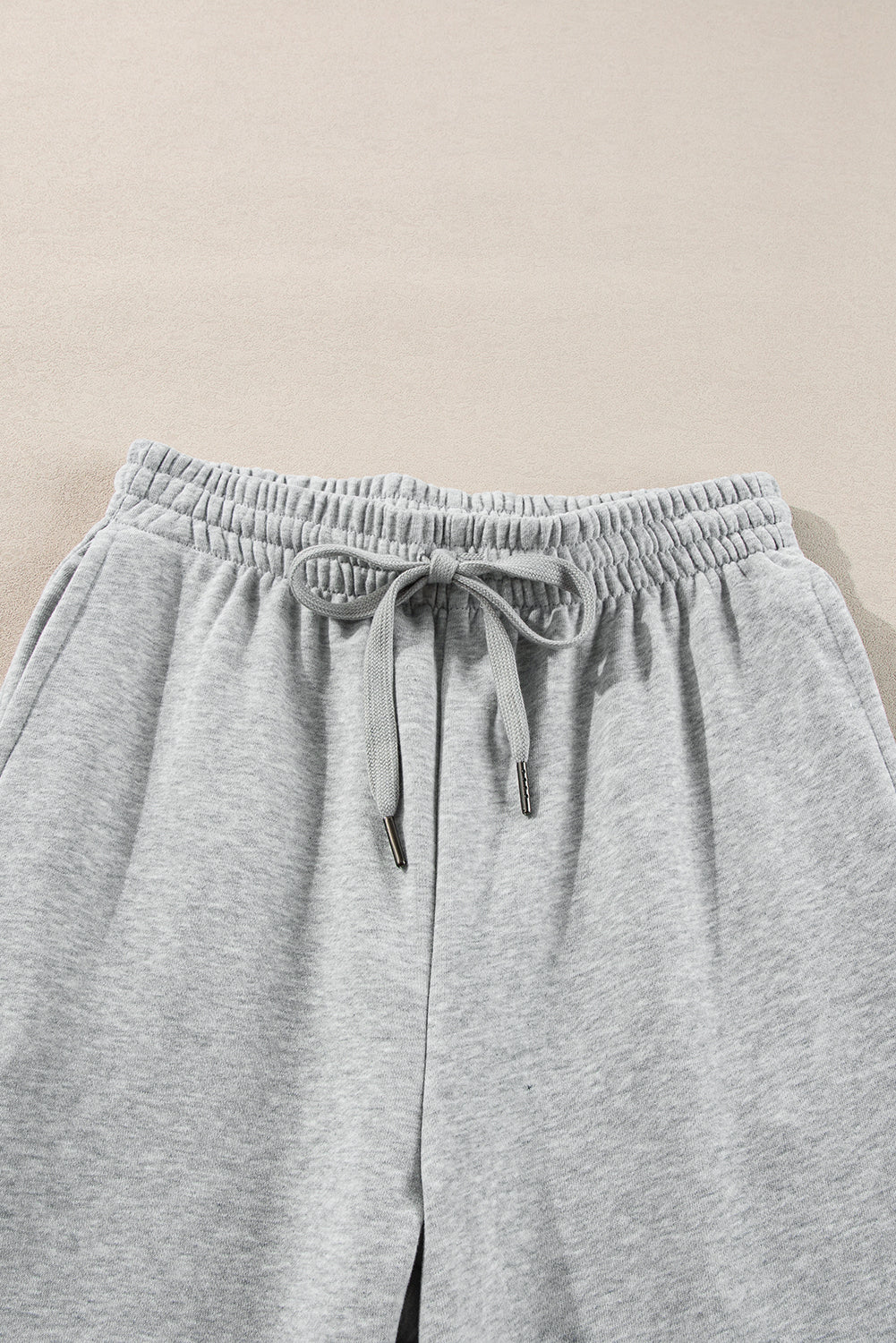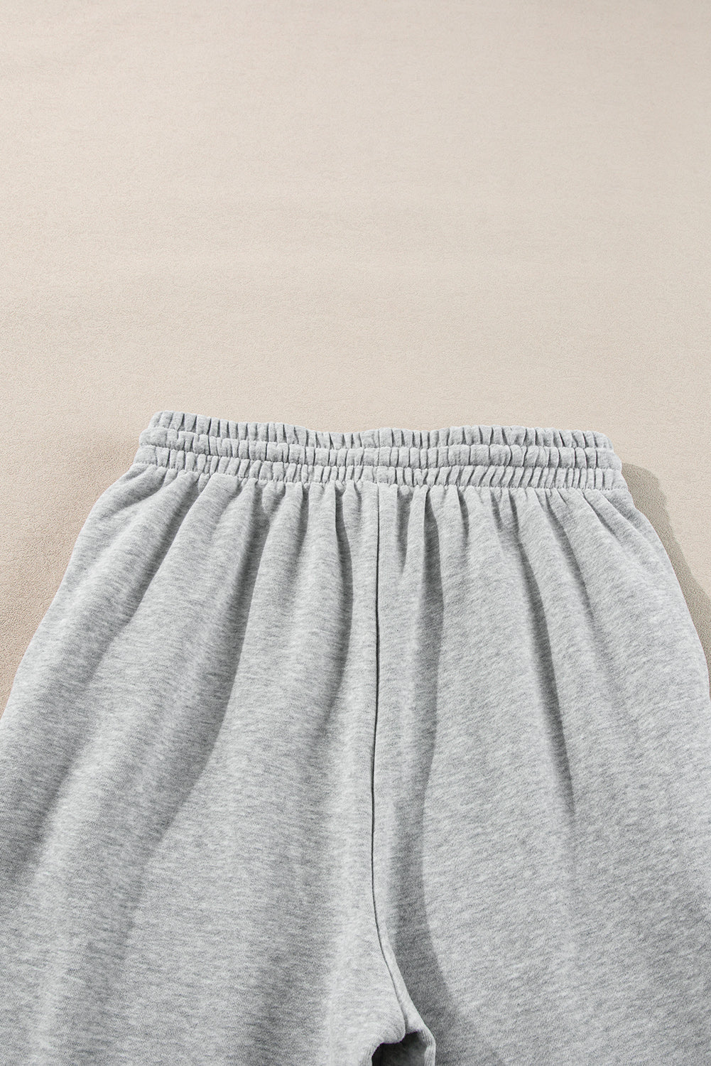 Navy Blue Solid Color Fleece Lined Drawstring Waist Joggers