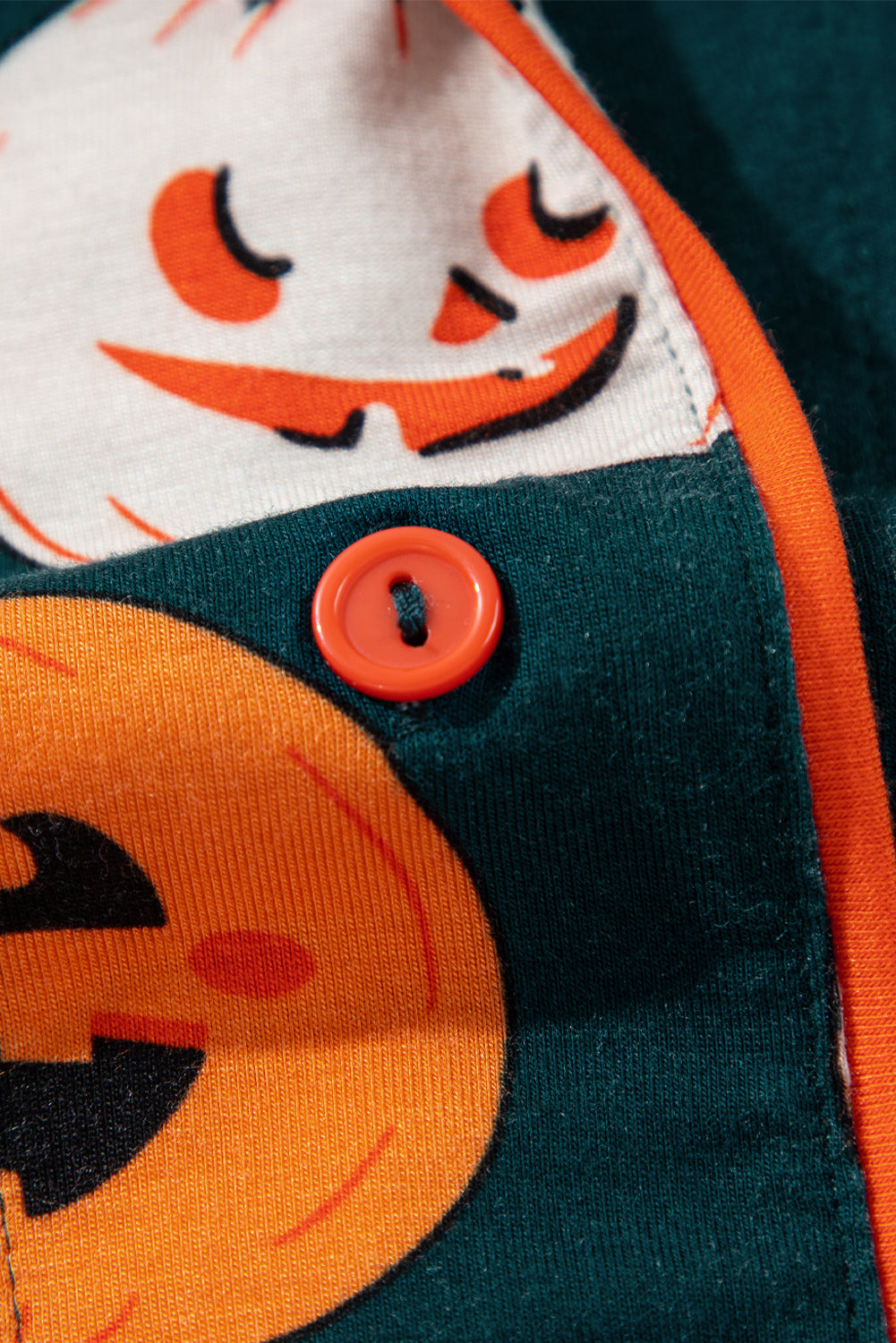 Orange Halloween Pattern Short Sleeve Shirt Pajama Set
