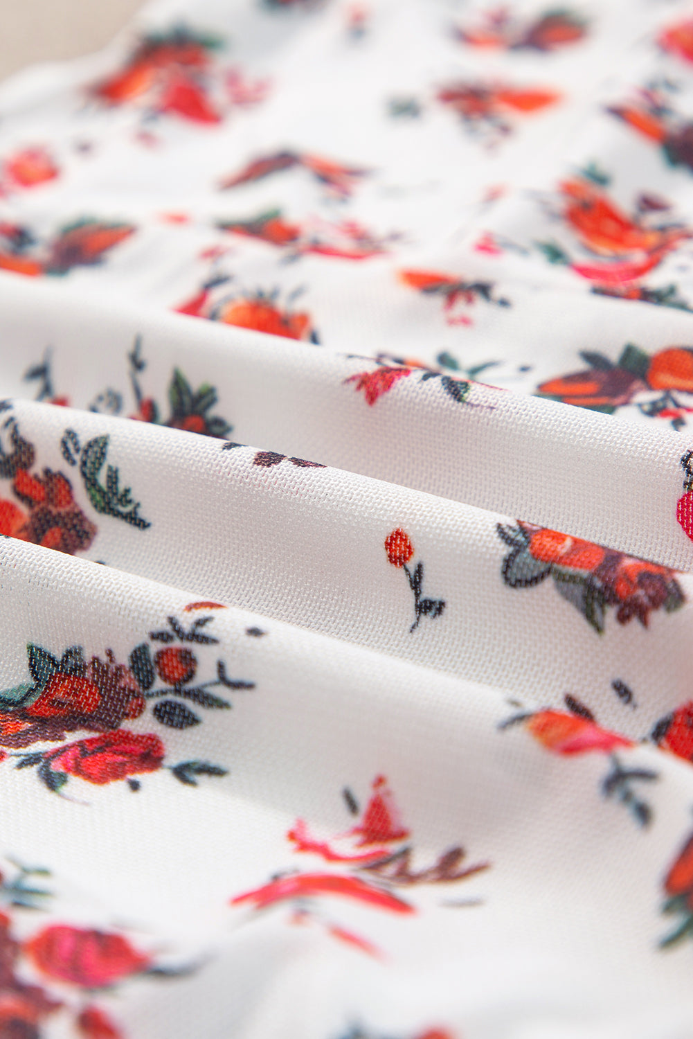 White Floral V Cut Frilled Trim Spaghetti Straps Bodysuit